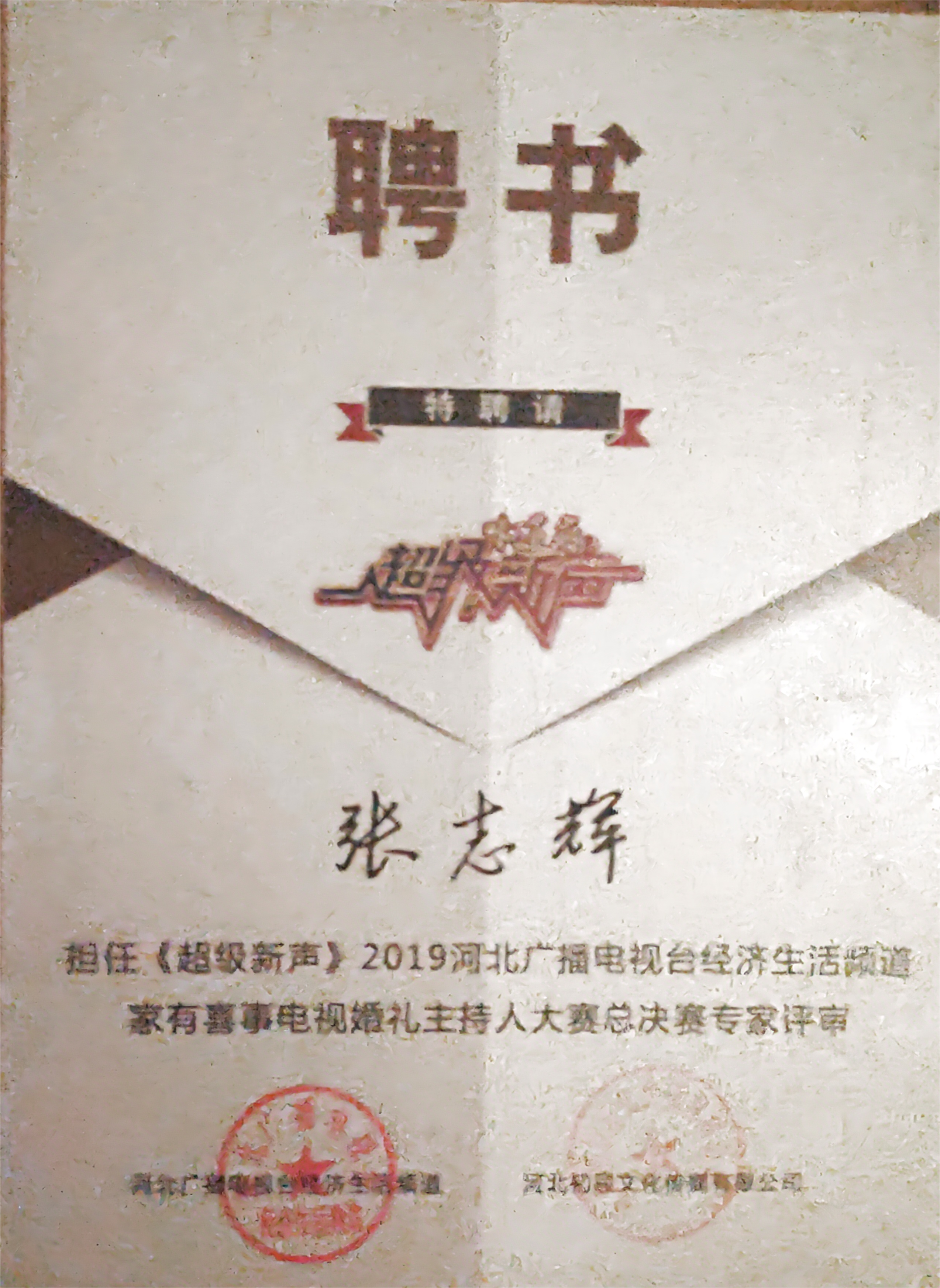 河北省著名婚礼主持人奖牌。 张占祥 摄