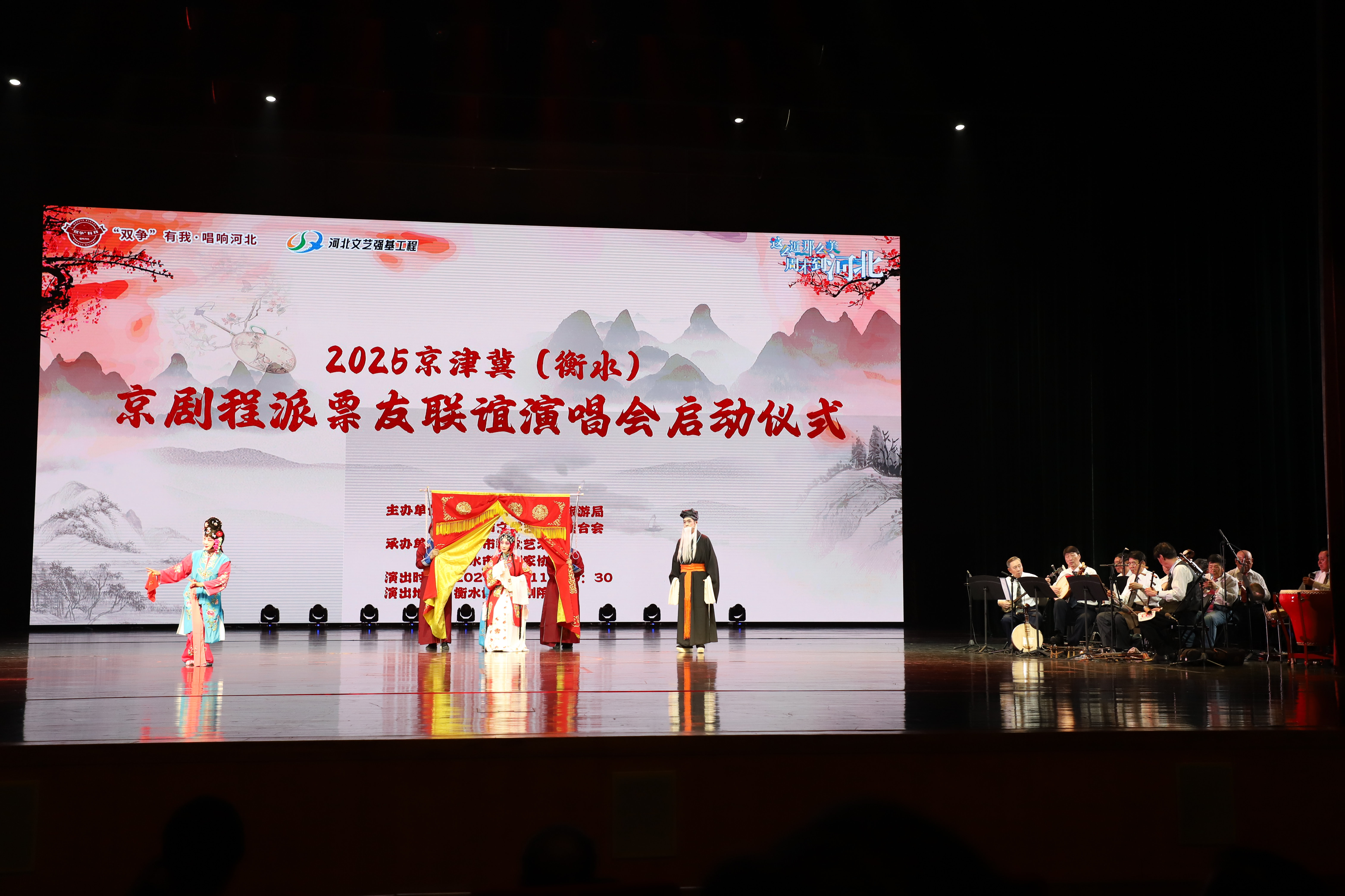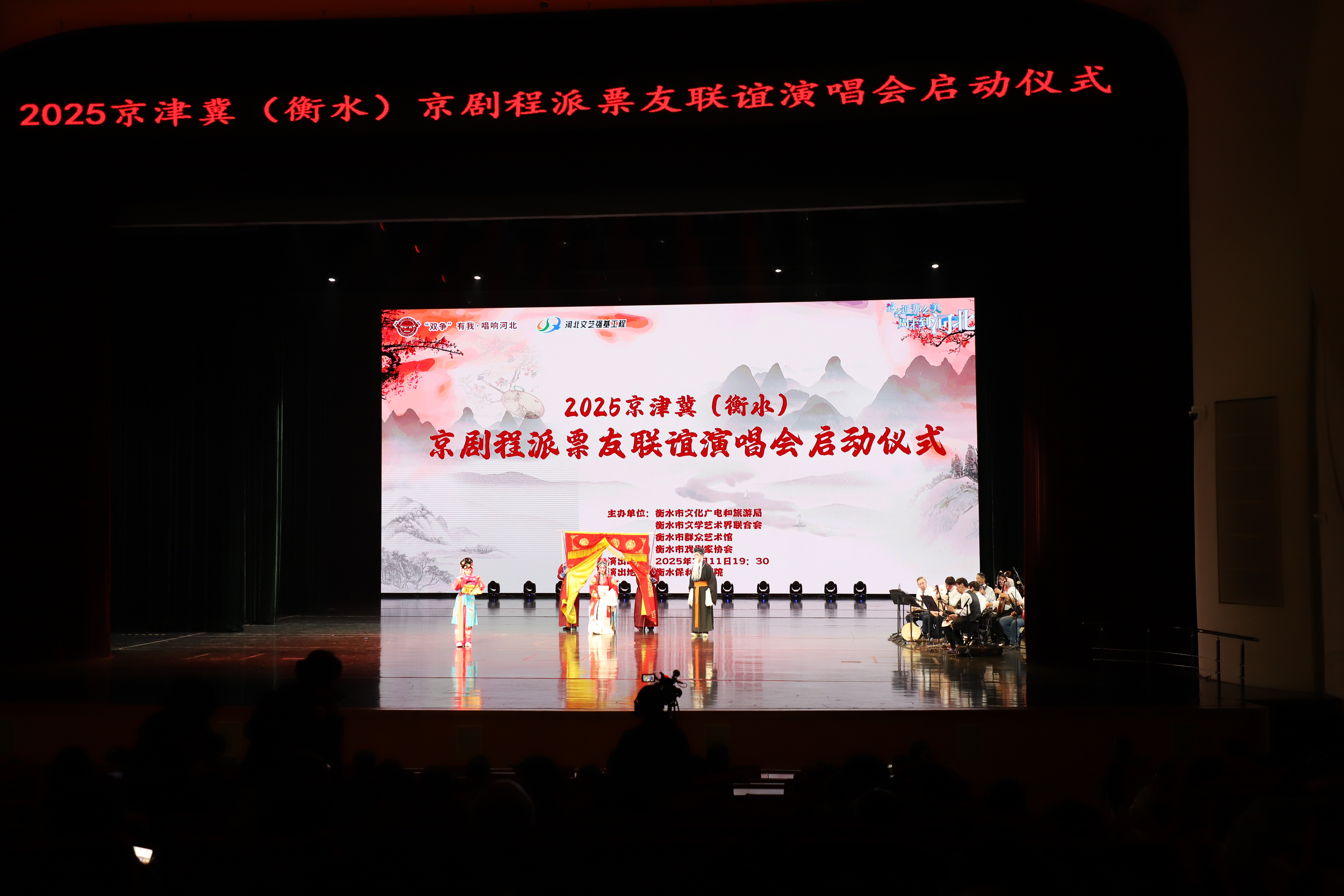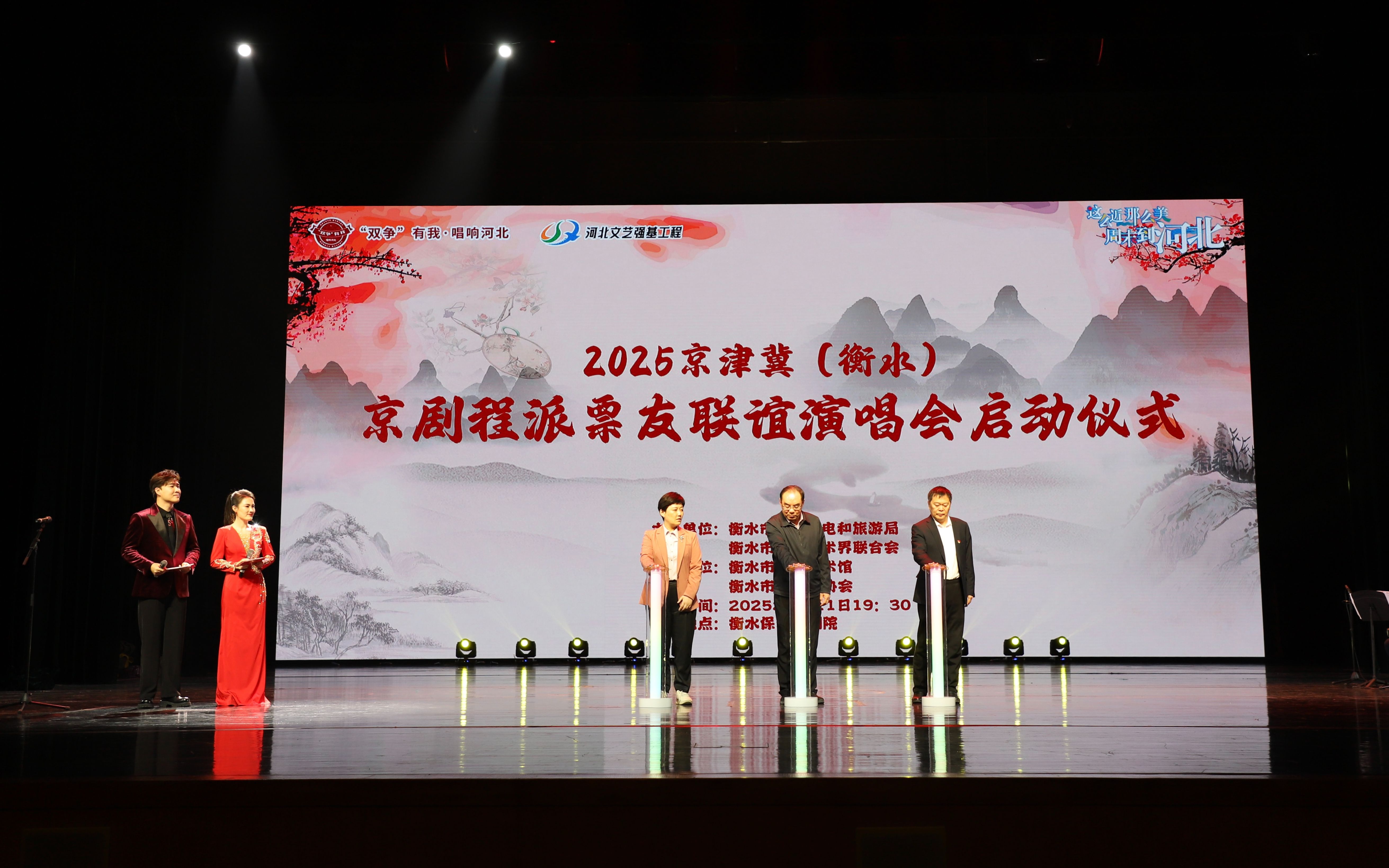 本次活动由衡水市文化广电和旅游局、衡水市文学艺术界联合会主办,衡水市群众艺术馆、衡水市戏剧家协会承办。当晚19时30分,启动仪式正式开始,与会相关单位领导共同轻触“启动柱”,正式拉开2025京津冀(衡水)京剧程派票友联谊演唱会序幕。