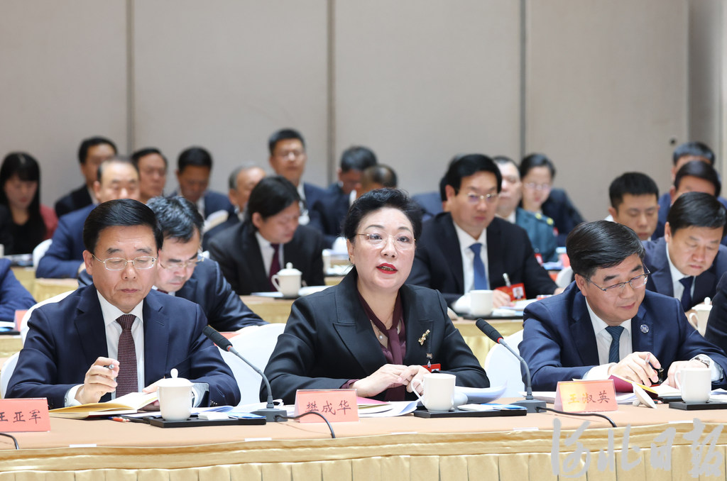 大会期间,河北省代表团全体代表认真参加审议,积极建言献策。王淑英代表(前排右一)在会议上发言。