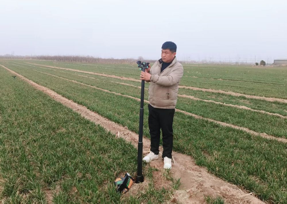 在河北省衡水市冀州区南午村镇东古头村,纵横交错的黑色滴灌带延伸至麦田深处。冀州区农技专家王多存在田间指导村民将氮、磷、钾等肥料按比例溶解于灌溉系统,实现浇水、施肥同步精准作业。