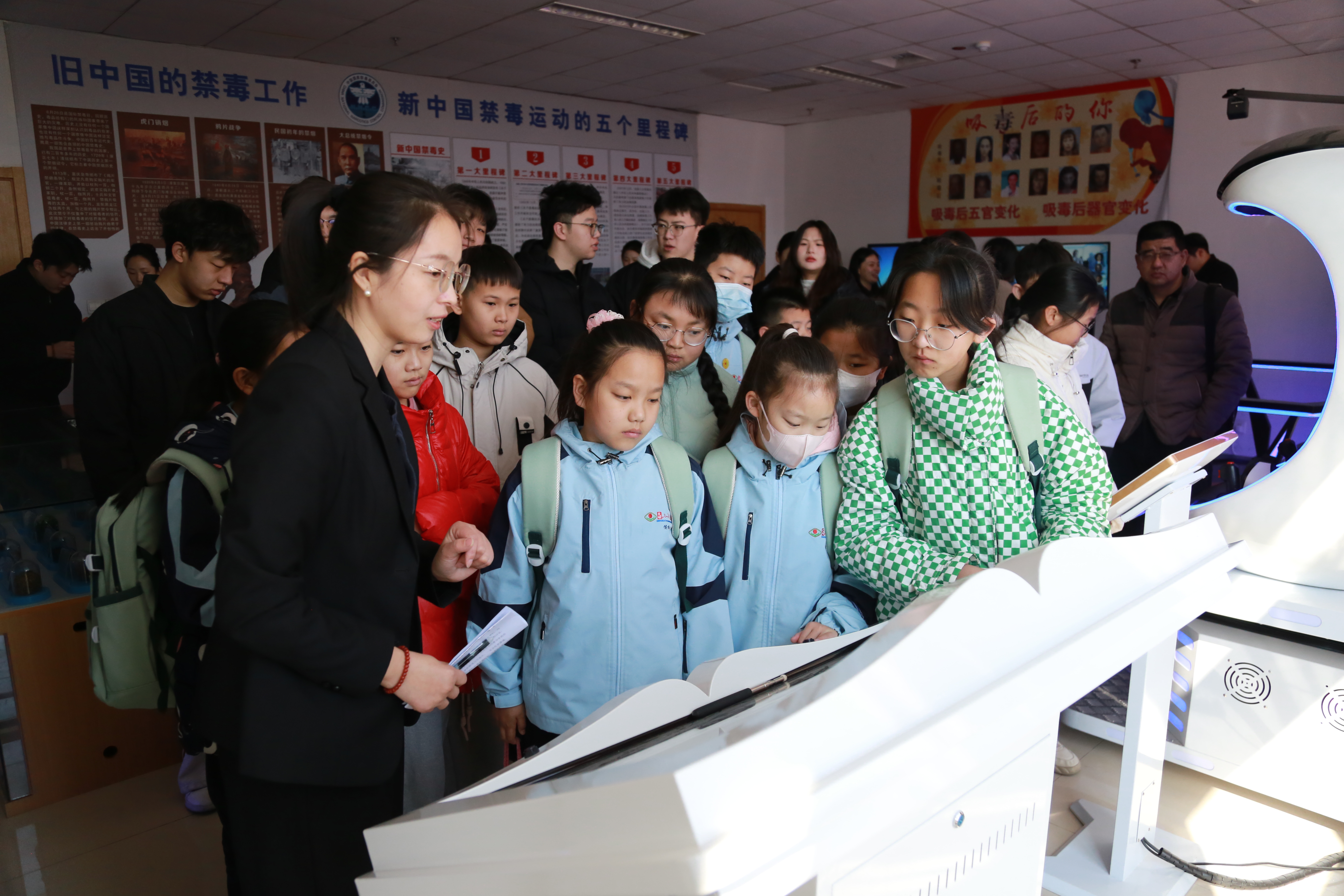 活动前,大学生和小记者来到图书馆四楼的衡水市青少年禁毒教育基地。基地讲解员通过实物展示、图文介绍、多媒体演示等形式,深入讲解毒品的严重危害、常见毒品类型如海洛因、冰毒、摇头丸等的识别方法,以及我国禁毒法律法规。期间,组织观看禁毒宣传影片,以真实案例强化大家对毒品危害的认知。