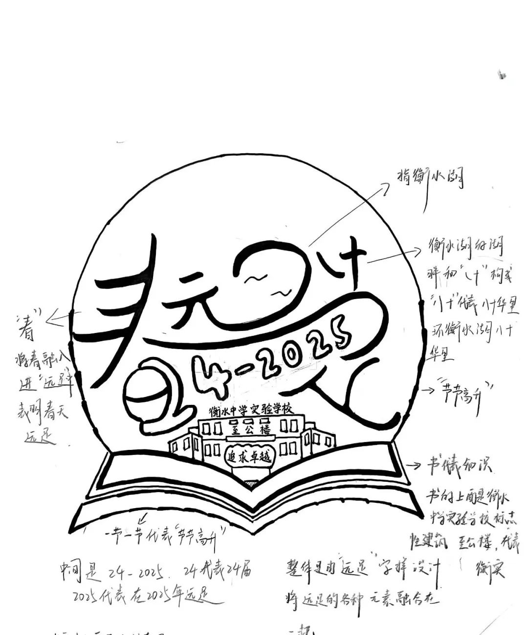 一草一木皆用心,一笔一画总关情。同学们热情高涨,积极参与征集,短短几日便征集到众多徽章设计作品。设计过程中,同学们紧扣“衡水湖远足”、“环保同行”、“第二十八届远足”等主题,将自然之美与青春活力融为一体。有的作品以衡水湖的碧波为底色,点缀振翅的飞鸟,寓意远足征程的自由与开阔。有的作品用黑白线条勾勒出学校大门的庄严轮廓,再以水墨晕染出“2025”的字样,既展现校园风采,又寄托对未来的期许。