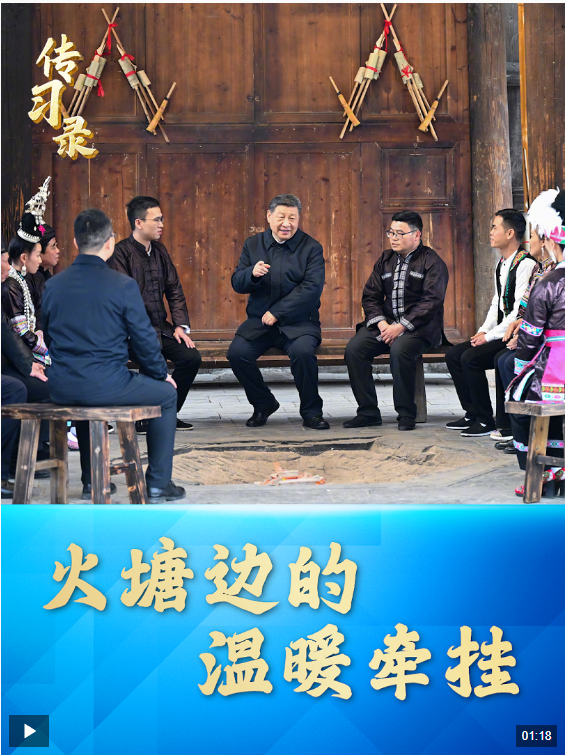 3月17日,习近平总书记来到贵州省黔东南州黎平县肇兴侗寨考察调研。信团鼓楼内,一方火塘边,总书记同村干部和村民代表围坐一起,共话乡村全面振兴。