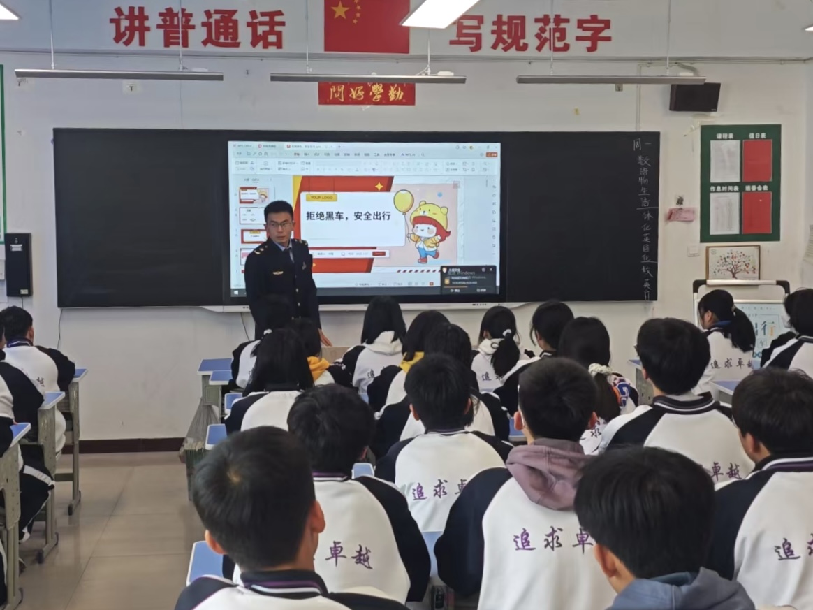 主题课上,该局综合行政执法大队工作人员以“珍爱生命、远离黑车”为主题,结合道路运输典型案例,通过现场授课、互动提问等多种形式,从安全出行、文明乘车、依法维权三个方面,用通俗易懂的语言向师生们讲解如何识别、乘坐合法交通工具和如何维护自身合法权益。活动现场,师生们积极参与互动,现场气氛十分活跃。活动结束后,师生们纷纷表示,通过这次活动,学到了很多实用的交通安全知识,收获很多。