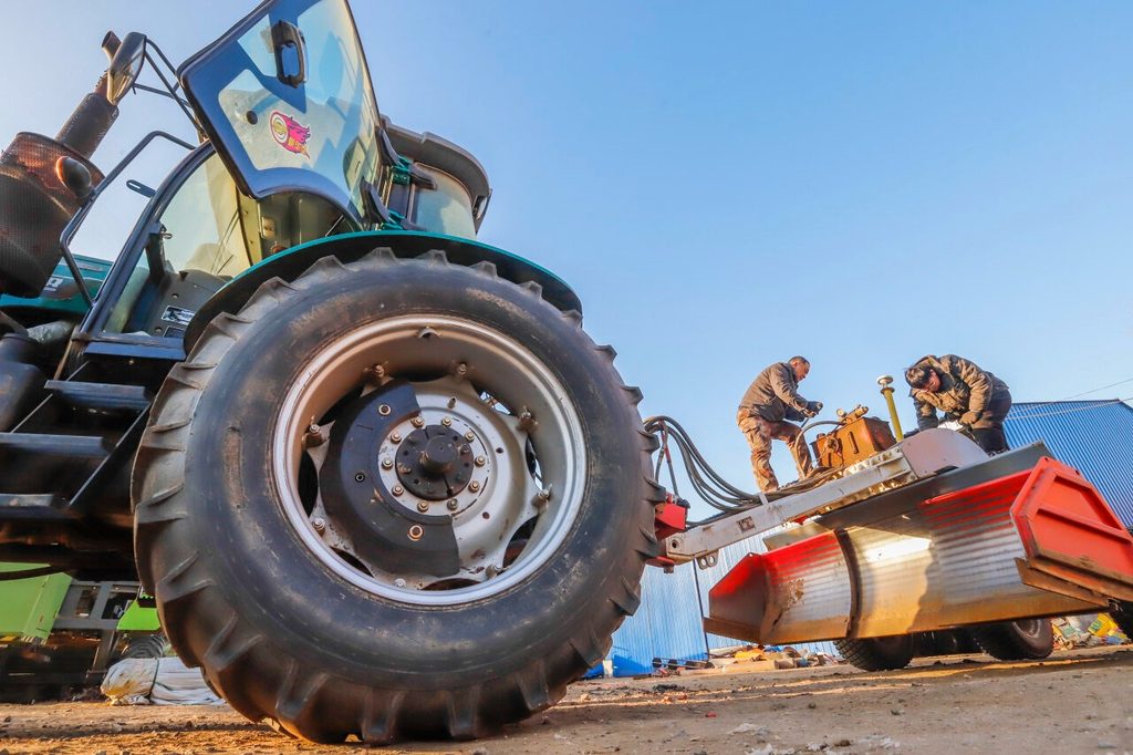 2月6日,遵化市东新庄镇一家农机合作社的驾驶员在检修农机具。新华社发