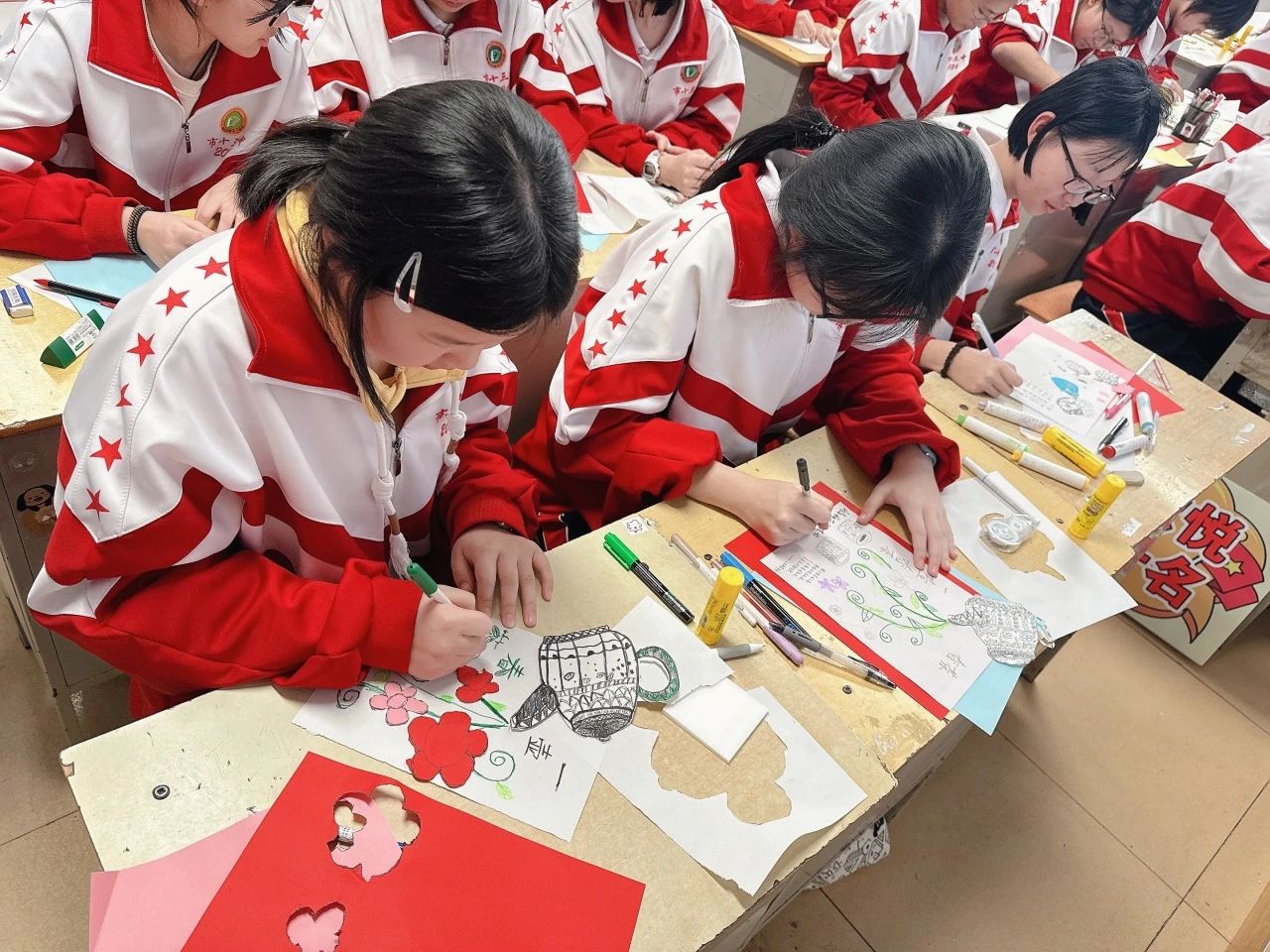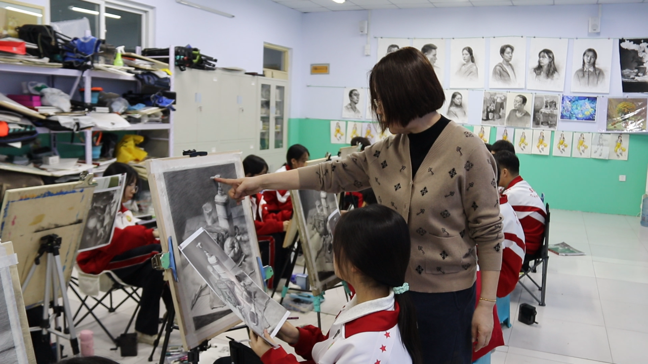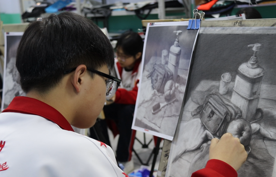 衡水十三中学子和美术老师一起,
