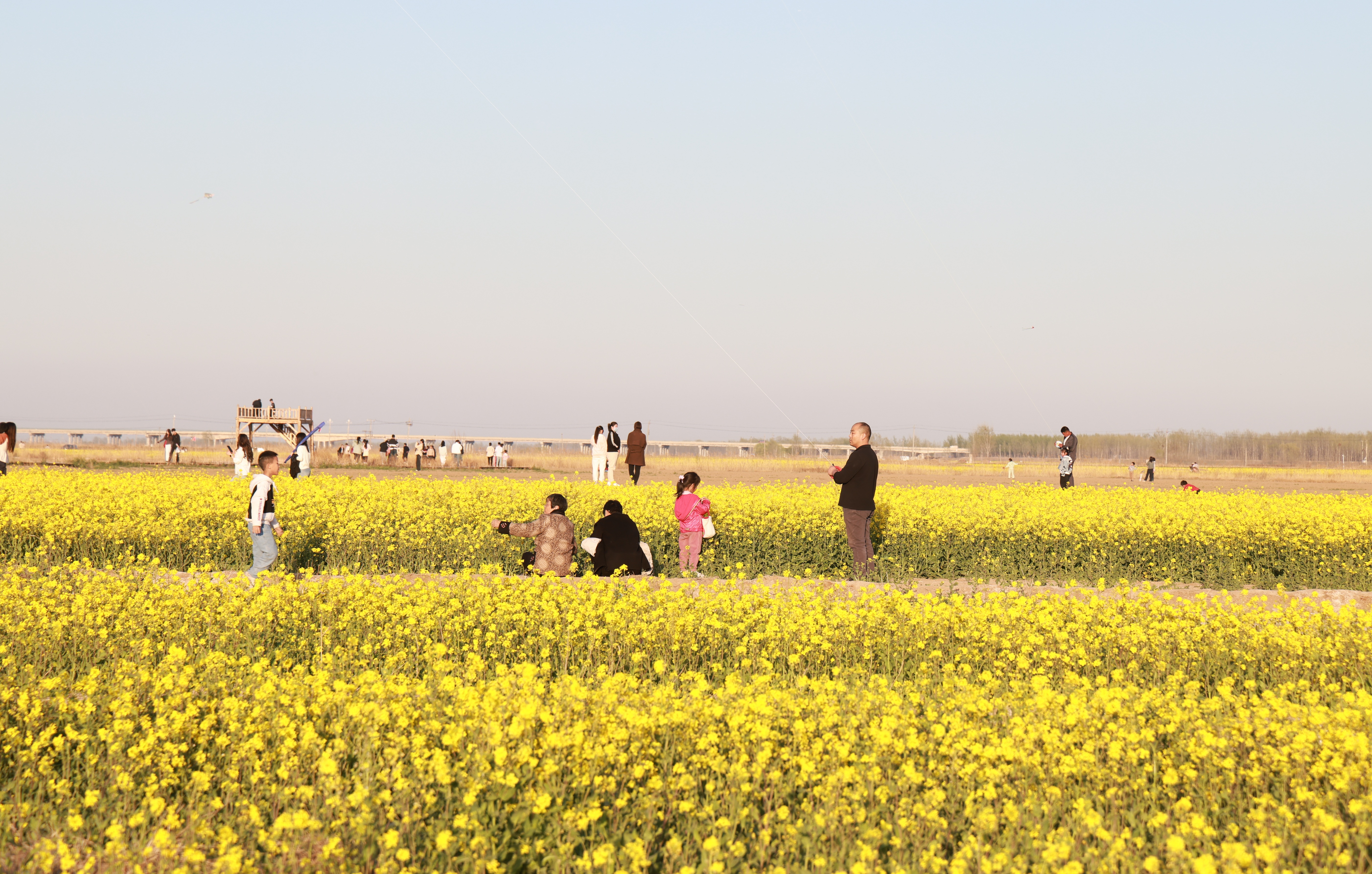 春日的暖阳下,郑口运河大桥游人如织,凭栏西望,六座挑水坝静卧河湾,见证着“千年运河第一湾”的壮美奇观。