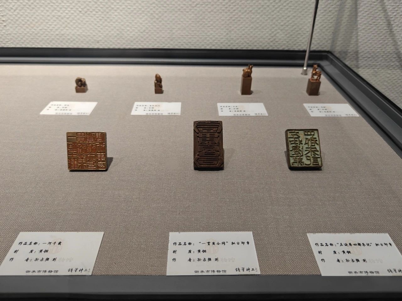 本次展览展品涵盖墨盒、镇尺等文房精品,每件均为艺术与技术的完美融合,充分展示了刻铜艺术独特的造型美感与深邃的文化韵味。当天上午,在迪庆州博物馆临展厅内,琳琅满目的刻铜作品在展示灯下闪烁着耀眼的光芒,吸引了众多当地刻铜艺术爱好者前去参观。大家一步一停,在一件件精美的刻铜作品前,驻足欣赏,并为刻铜艺术的精巧和雅韵所震撼。“我一直对刻铜艺术很感兴趣,这次可以近距离欣赏到宋国柱老师的刻铜佳作,感到非常兴奋,展出的每一件作品都令人赞不绝口!”当地刻铜艺术爱好者张娟表示。能够在家门口领略这些艺术瑰宝,同时深入了解刻铜艺术的发展历程、流派特色及其背后的文化意蕴,深刻体会中华民族卓越的工艺智慧与审美情趣,许多游客感到不虚此行。