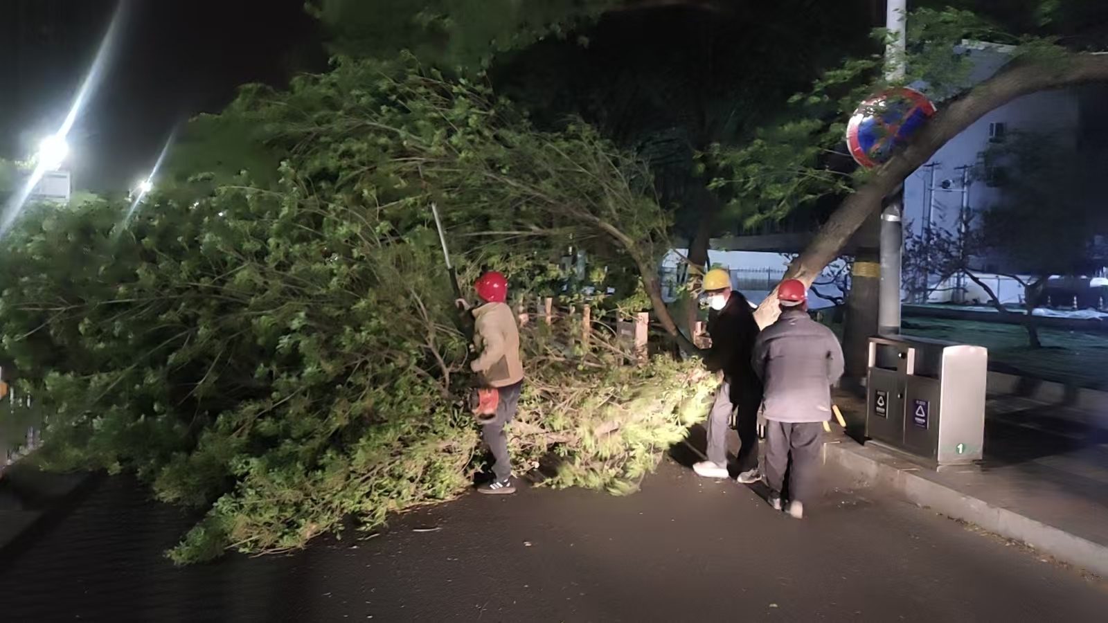 4月11日深夜,我市大风肆虐,主城区多处行道树木、树枝被大风刮倒占据行车道,造成道路不畅,也给过往行人、车辆带来了安全隐患。市园林中心迅速行动,立即启动恶劣天气应急预案,组织应急抢险队彻夜开展树木倒伏、断枝处理等各类险情排查处置工作,保障市民出行安全。