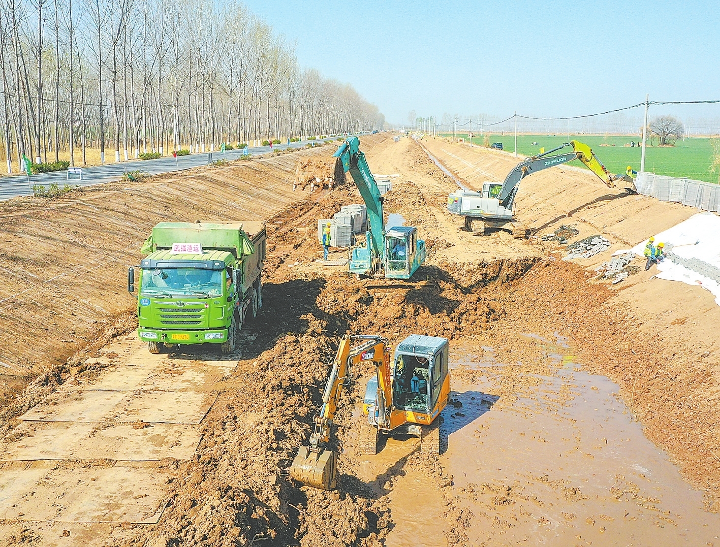 清理整治河道、修建闸桥泵站……连日来,武强县以织密水资源配置网、筑牢防洪排涝网、复苏水生态保护网为主要任务,大力开展河湖水系连通和农田水利建设,全面提高水资源优化配置能力、水旱灾害防御能力和水生态系统保护治理能力,为农田灌溉和乡村振兴注入“源头活水”。