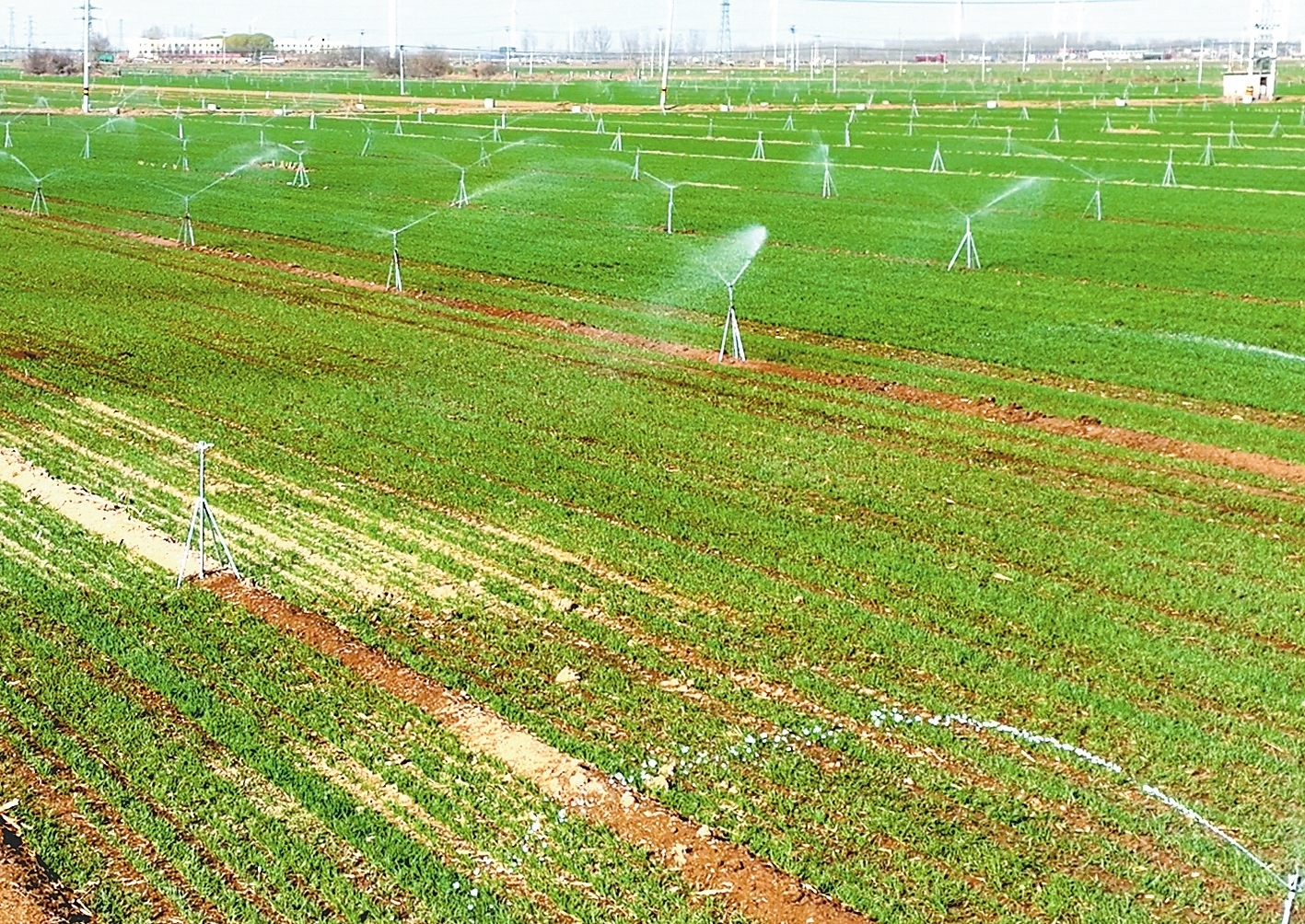 北代镇后西代村在用喷灌浇小麦。 耿境辰 摄