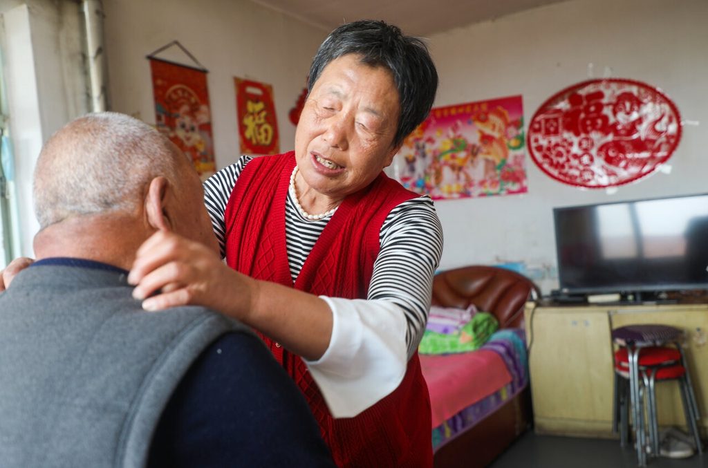 4月17日,董占花(右)在家中照顾家人。池世杰摄