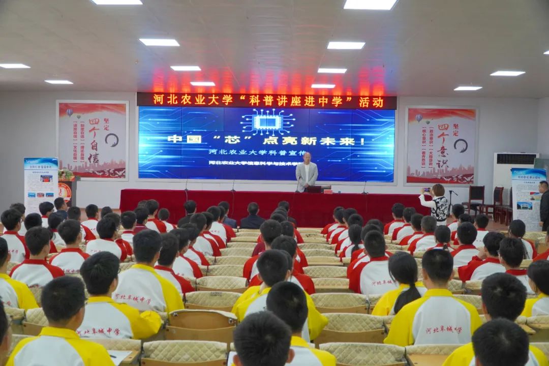 河北农大电子信息科学与技术系系主任司永胜以“中国‘芯’点亮新未来”为主题的讲座,为阜中高一高二300余名学生揭开了芯片科技的神秘面纱。