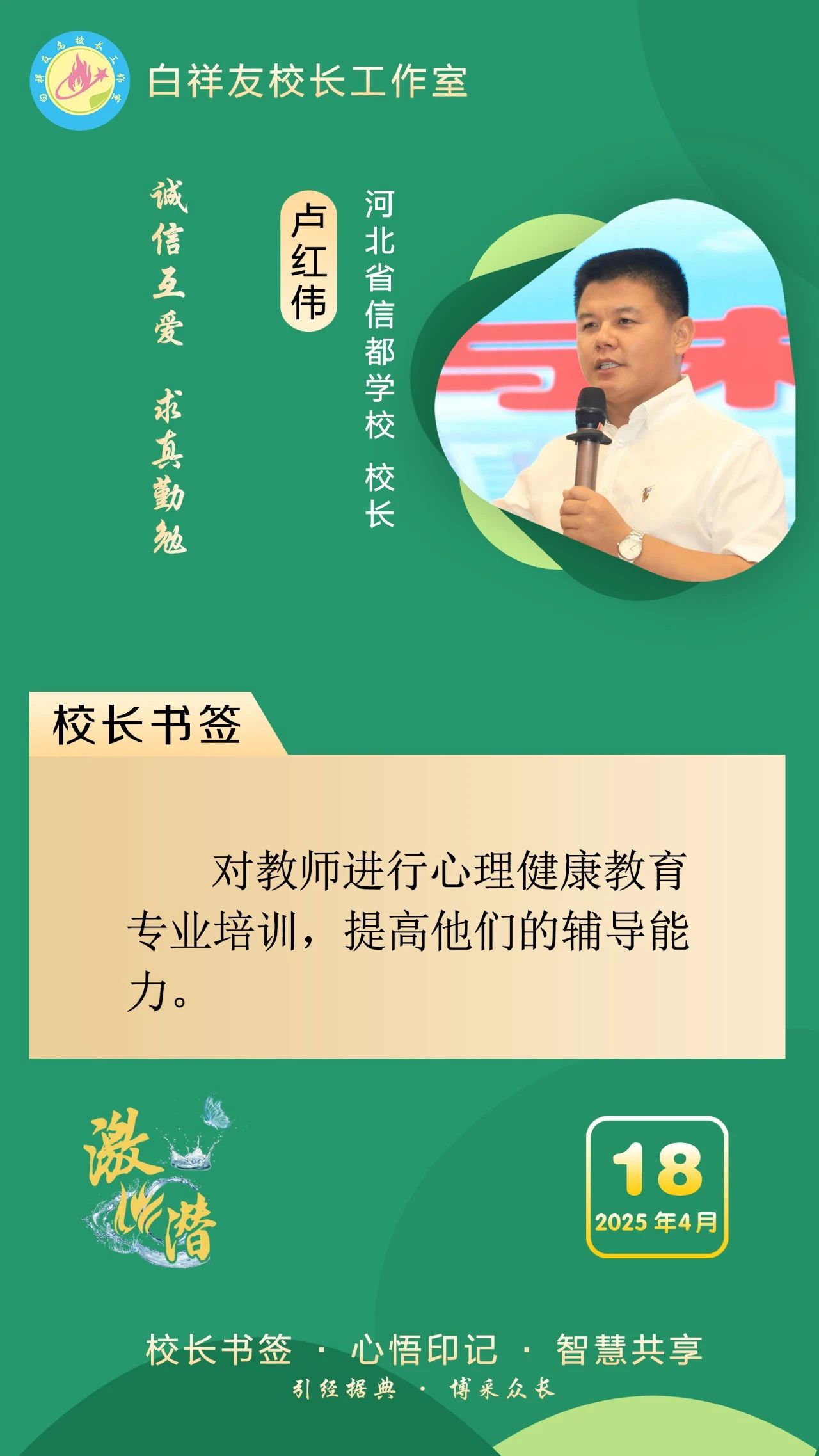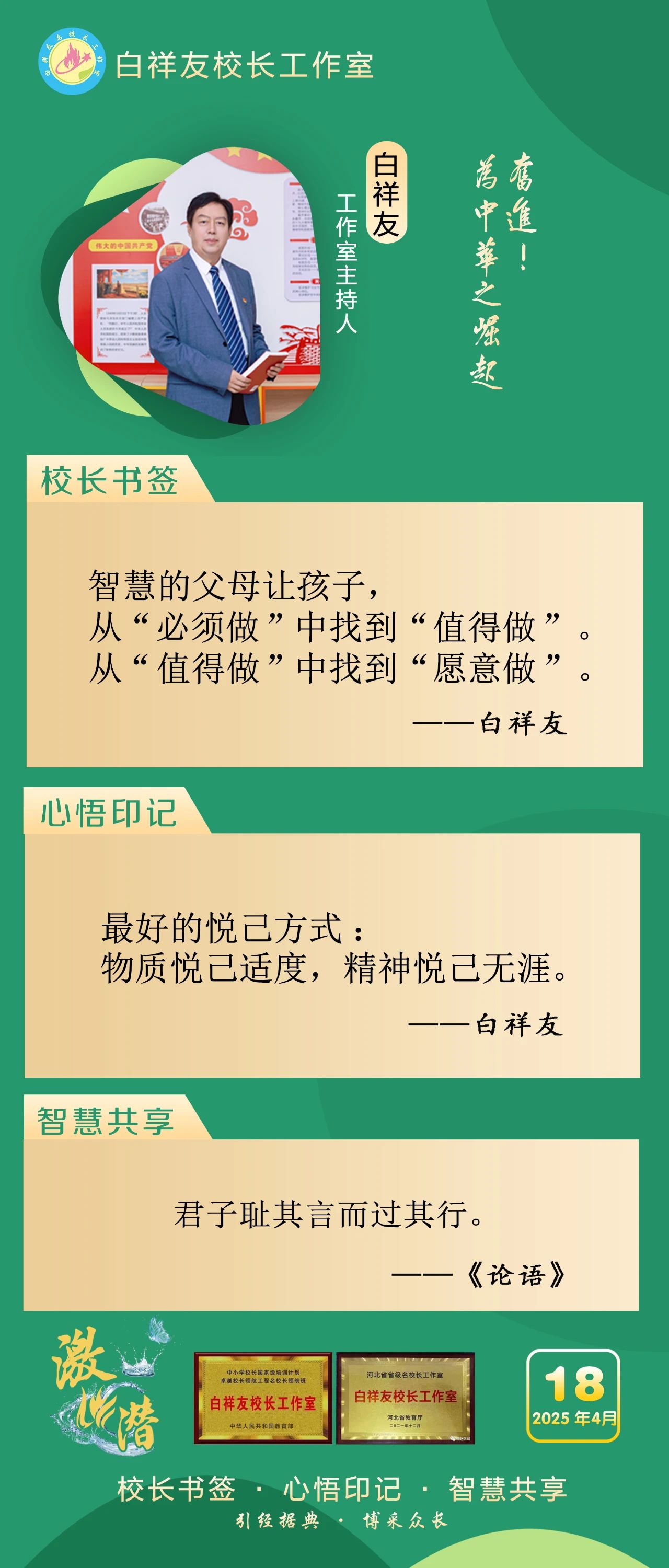 “白祥友校长工作室”成立于2019年4月,是教育部“国培计划”中小学名校长领航工程、河北省首批名校长工作室,目前省内外成员校56个。工作室坚持“资源共享、智慧共融、互助共赢”理念,已成为思想碰撞的交流场,资源共享的品牌站,成果展示的辐射源。