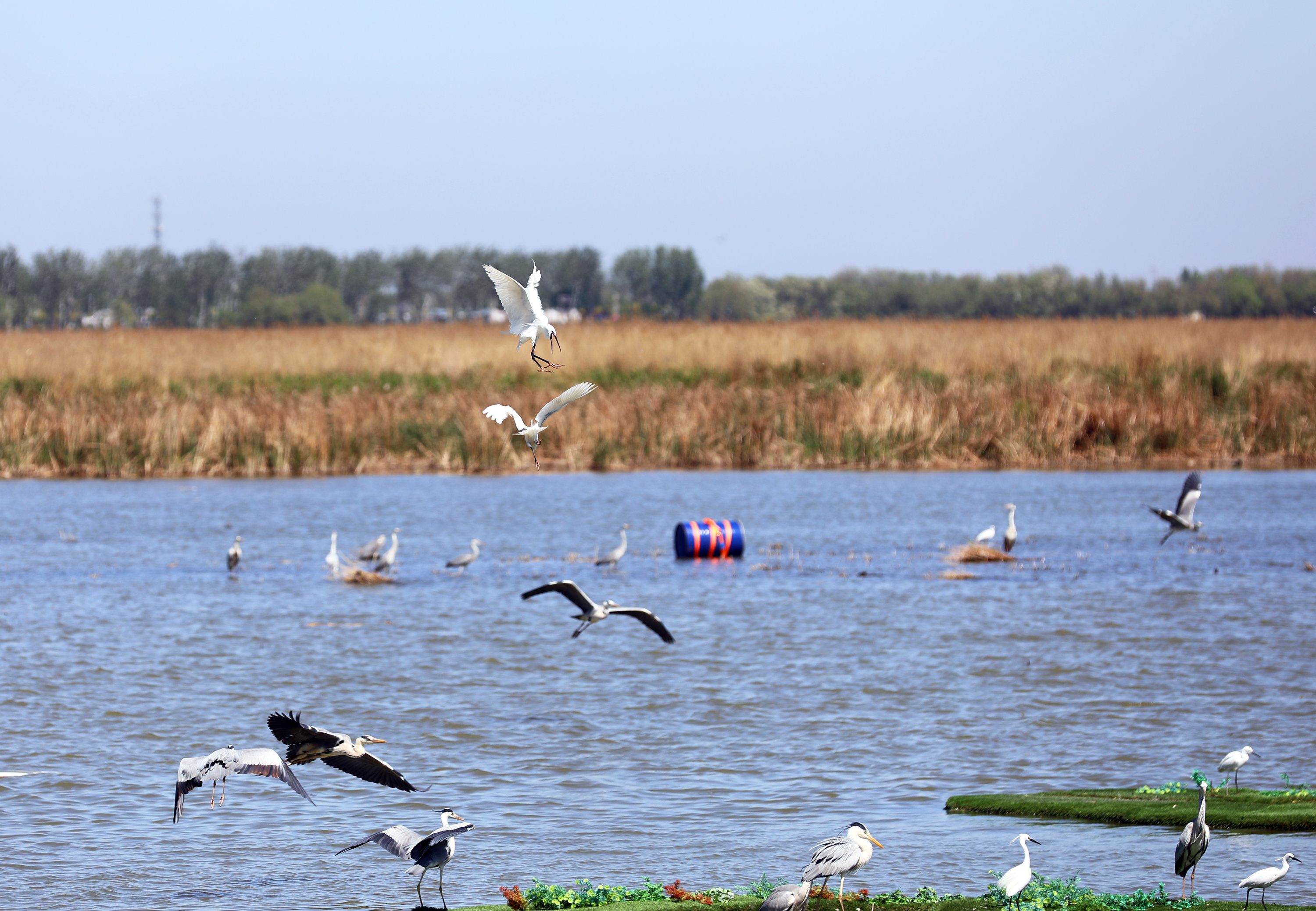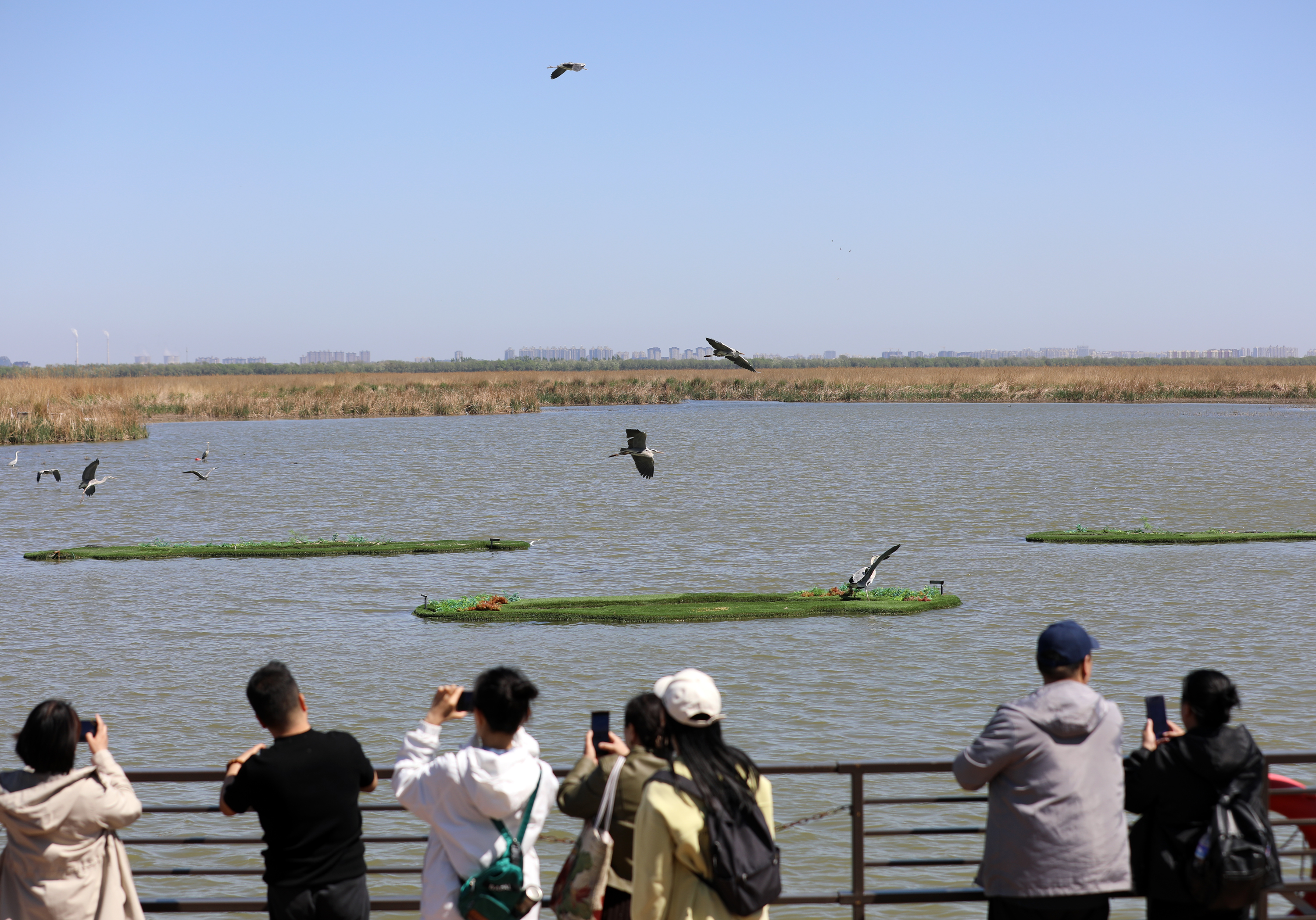 除了烂漫的流苏花,樱花岛上众多水鸟或在湖面嬉戏觅食,或于空中盘旋飞翔,欢快的鸟鸣声与游人的欢声笑语交织在一起,构成了一曲人与自然和谐共生的美妙乐章,生动地展现出衡水湖生机勃勃、温馨美好的生态画卷。
