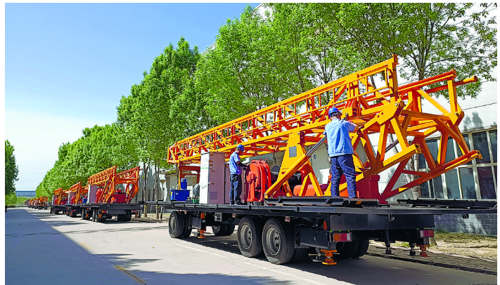 在产品试验场,两台拖车钻机正在同时进行试验调试,不远处完成试验检测的拖车钻机整装待发,即将发往港口交付海外用户。“这是我们公司正在开展的重点出口产品保交付大会战劳动竞赛。今年公司国际订单超两亿元,为确保出口产品按期保质交付,公司各单位协调联动,相互补位,齐心协力保配套、保进度,目前已完成100多台出口拖车钻机的交付任务啦!”石煤机公司总工程师杨阳欣喜地对记者说。