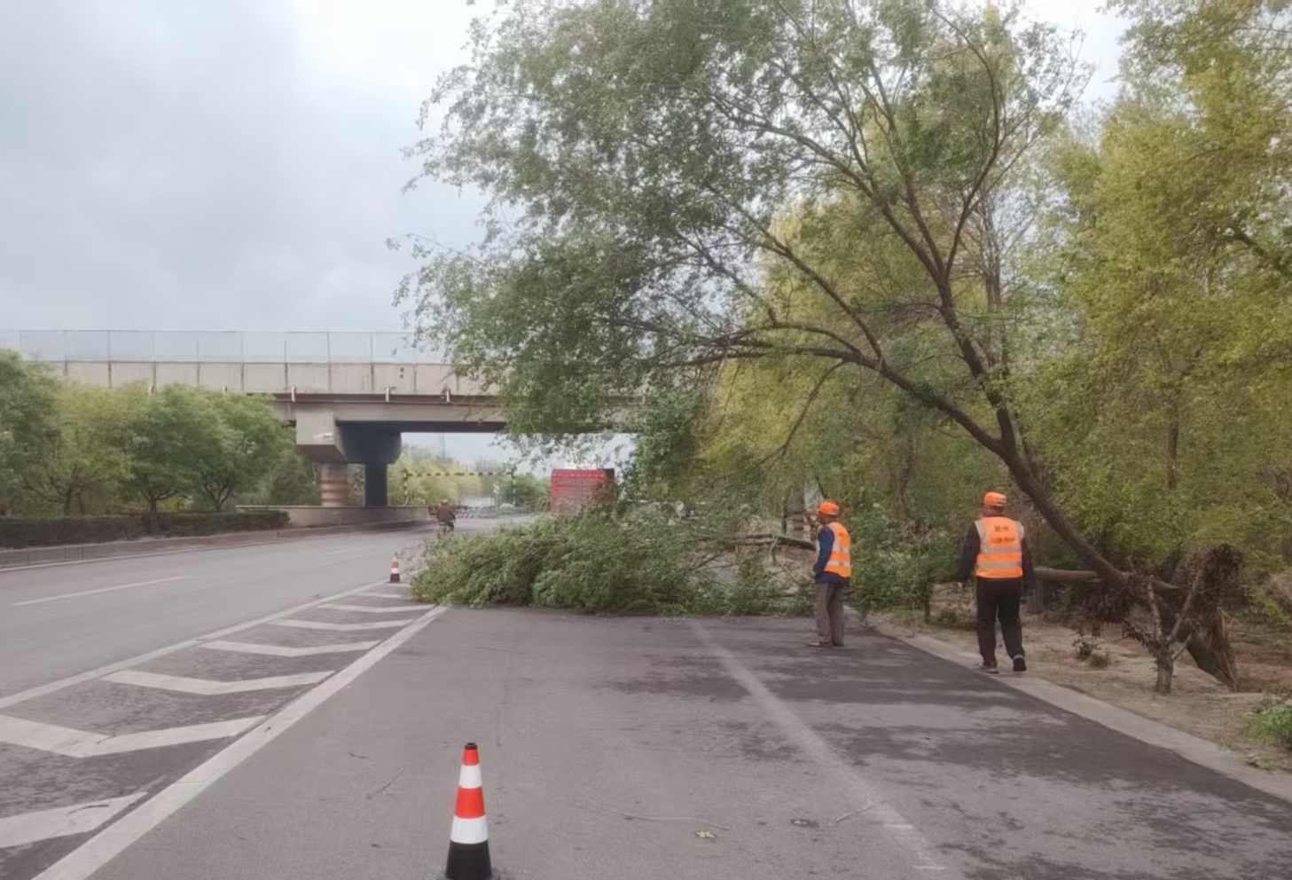 当天,雷雨大风天气出现后,部分国省干线公路沿线出现树木倒伏、断枝散落情况,严重影响道路通行安全。为确保五一假期群众出行畅通,我市各县市区养护单位立即启动恶劣天气应急响应机制,组织应急抢险队伍30分钟内到达现场,科学分析险情,迅速开展抢通。抢险人员采取“机械切割+人工清运”方式高效处置,以最快速度恢复道路畅通。