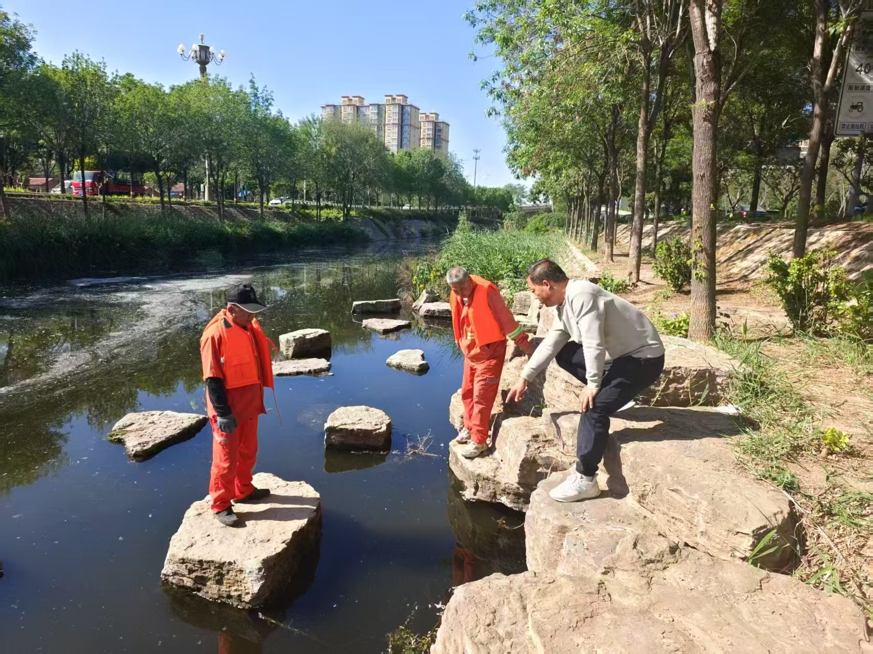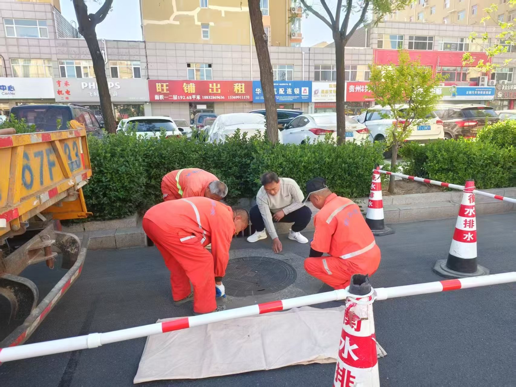 上午 11 点,正在迎宾河巡查雨水出水口的刘龙海接到值班热线反馈的紧急情况,有市民反映位于大庆路的一个排水井盖破损,给过往行人和车辆带来极大安全隐患。刘龙海立刻和同事们驱车前往现场。他们迅速行动,在破损井盖周边安全停车,设置好醒目的警示标识,提醒过往行人和车辆注意避让。刘龙海蹲下身子,仔细甄别井盖破损状况,发现井盖不仅表面碎裂,部分承重结构也已受损。他果断指挥同事准备更换新井盖。经过半个小时争分夺秒的紧张抢修,崭新的排水井盖稳稳安装到位。看着破损的排水设施焕然一新,恢复了安全和完整,刘龙海和他的同事们露出了朴实的笑容。“应急抢修就要求速度、效率,早点修好,老百姓心里就踏实了。”说完,他们就又急匆匆趁着午间排水量大,投入了第二轮的管网监测了。
