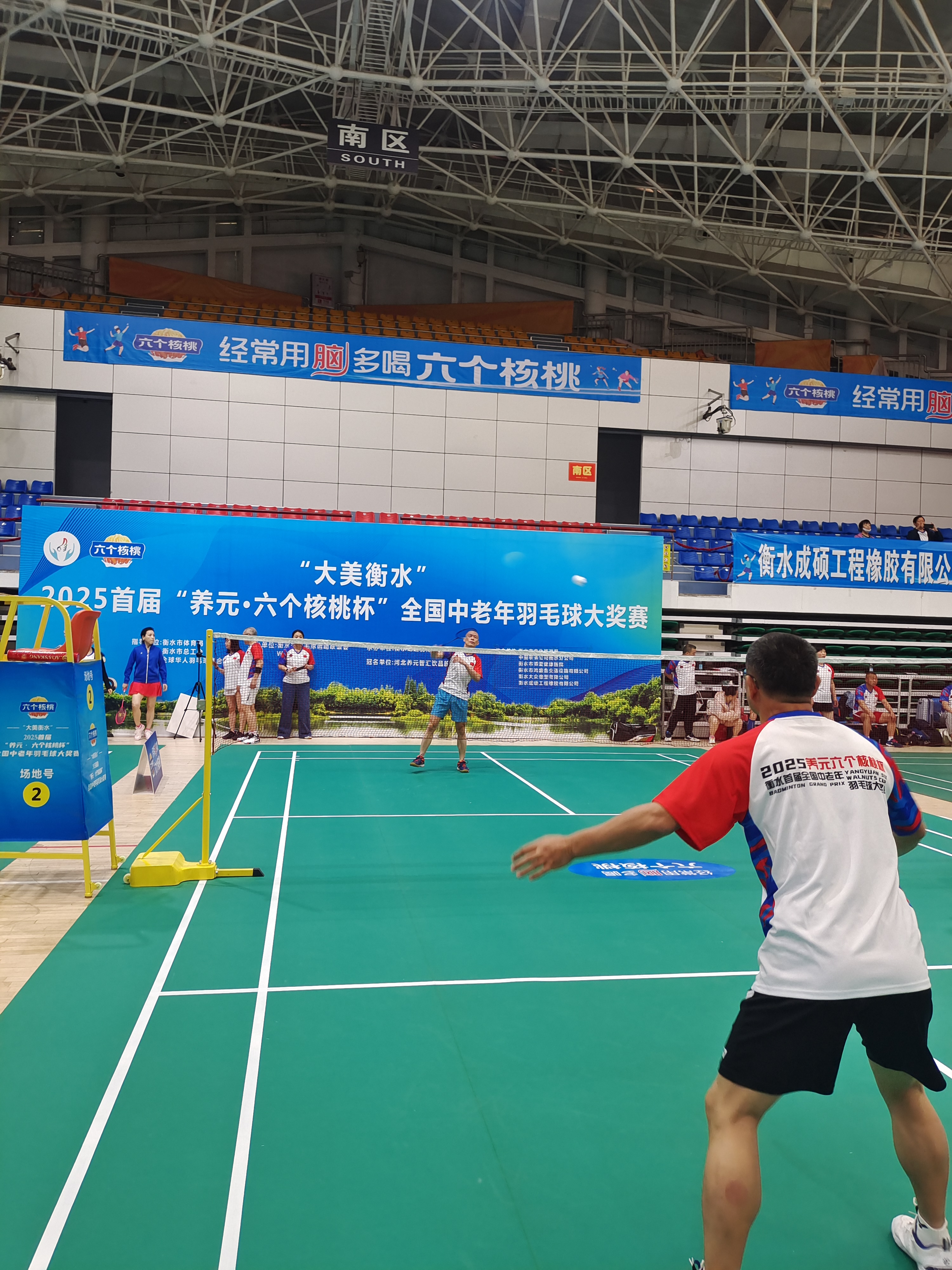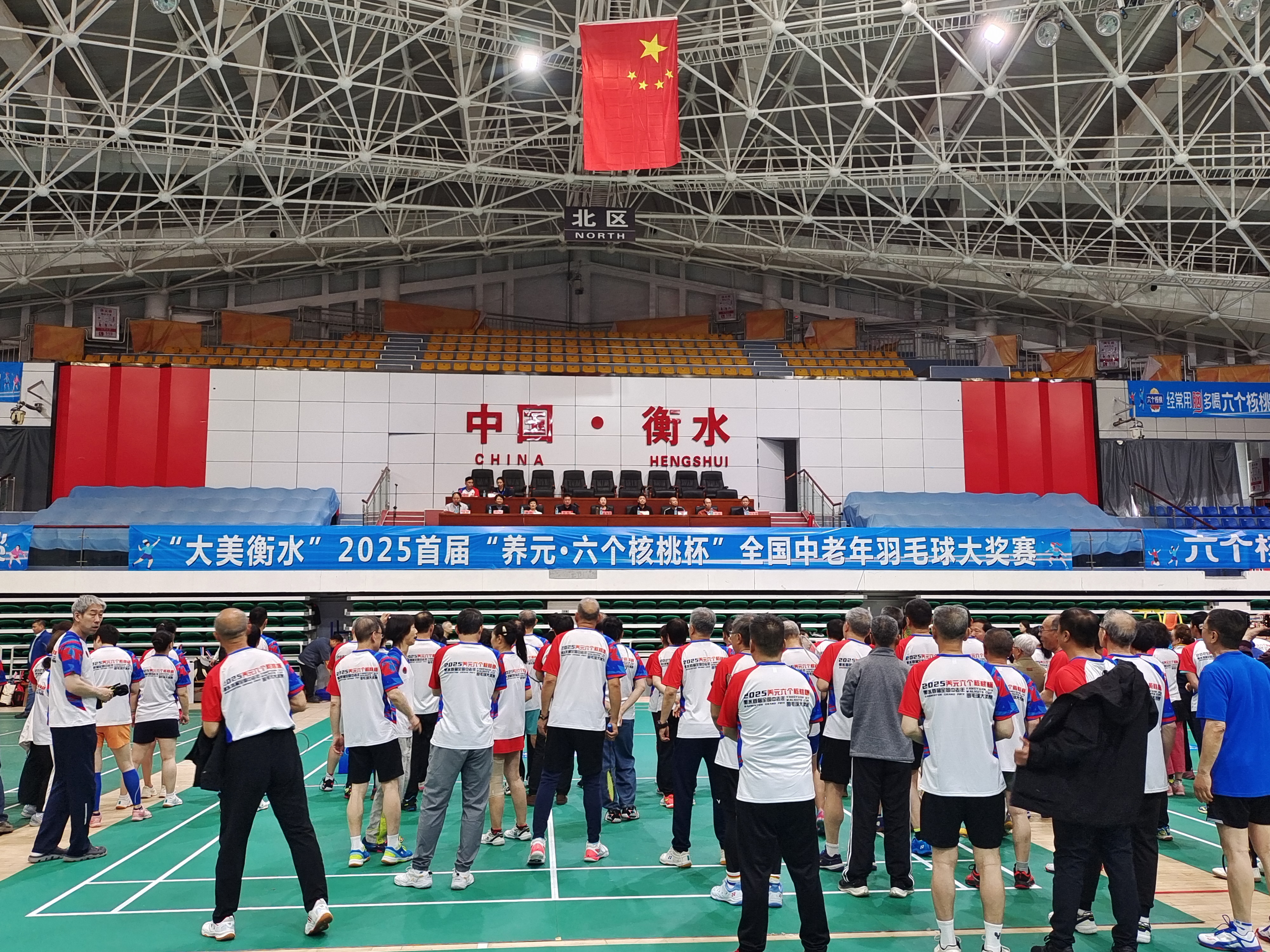 5月2日,“大美衡水”2025首届“养元六个核桃杯”全国中老年羽毛球大奖赛在市体育馆举办。来自全国各地的22支代表队、500余名羽毛球爱好者参加比赛。