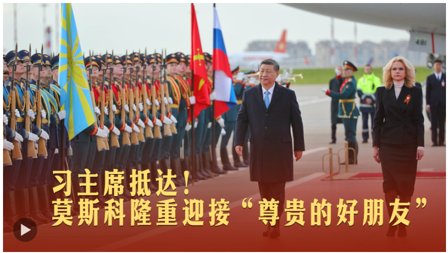 当地时间5月7日晚,国家主席习近平乘专机抵达莫斯科,应俄罗斯总统普京邀请,对俄罗斯进行国事访问并出席纪念苏联伟大卫国战争胜利80周年庆典。