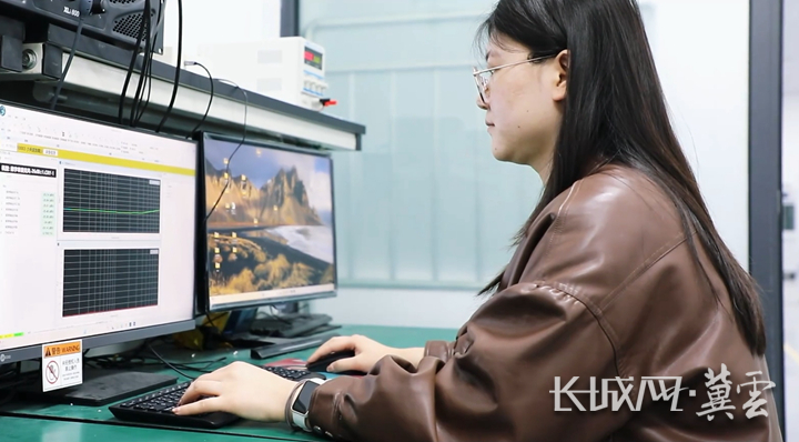 河北初光的音频分析室内,工作人员在测试产品声波曲线。长城网·冀云客户端记者 杨蕾 摄