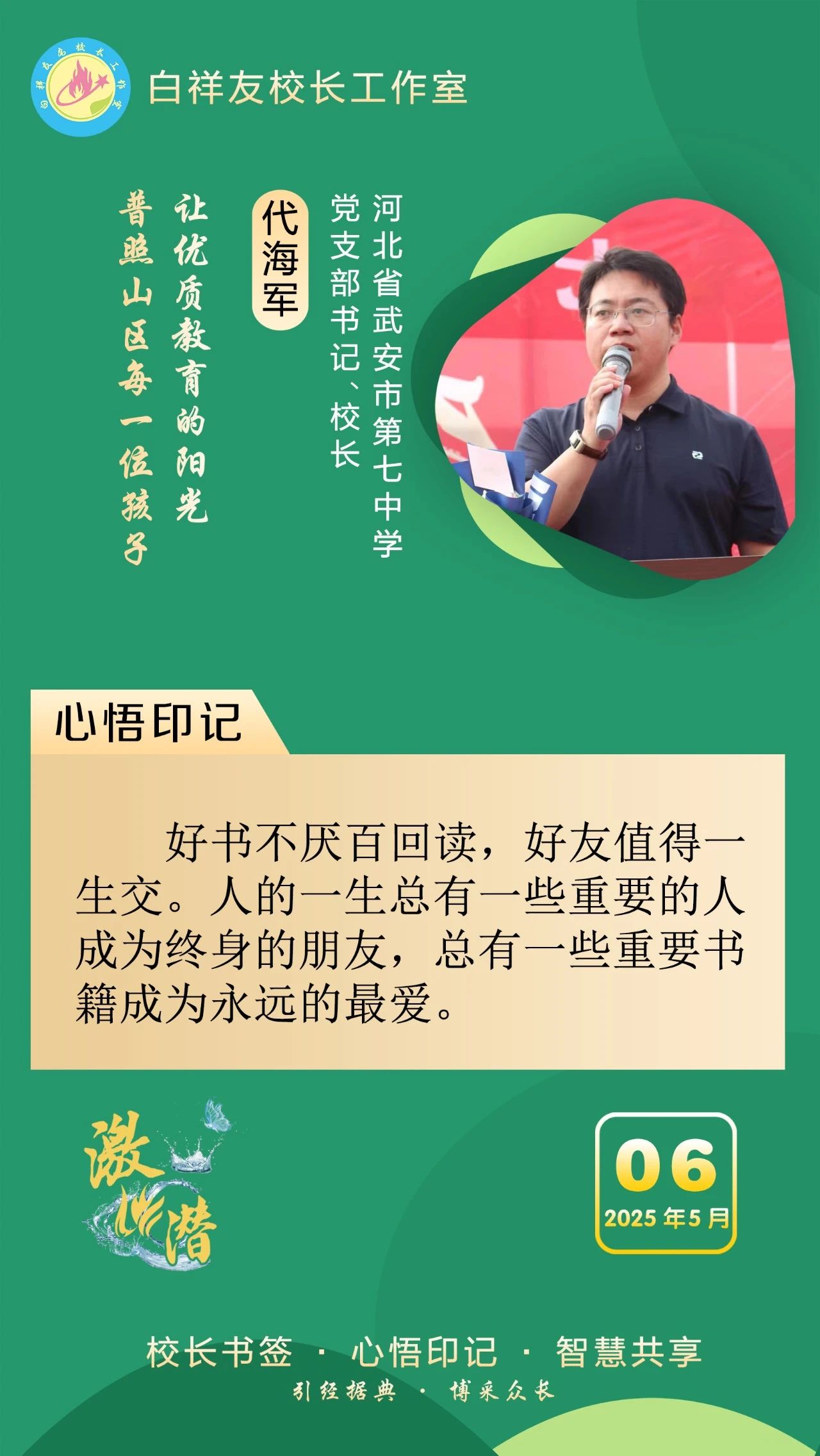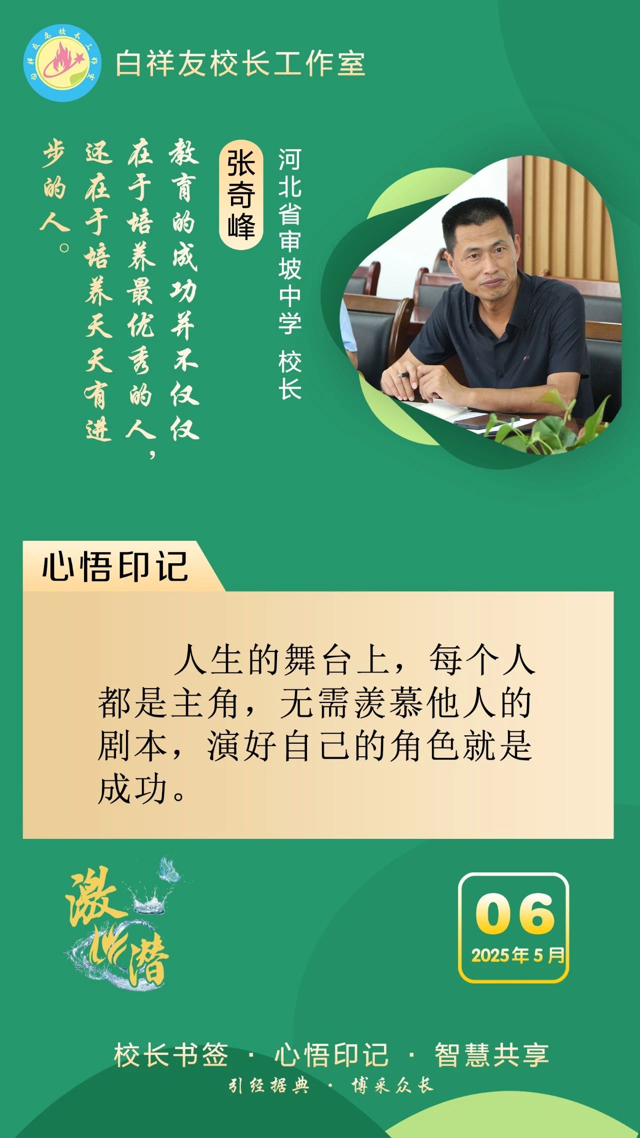 “白祥友校长工作室”成立于2019年4月,是教育部“国培计划”中小学名校长领航工程、河北省首批名校长工作室,目前省内外成员校59所。工作室坚持“资源共享、智慧共融、互助共赢”理念,已成为思想碰撞的交流场,资源共享的品牌站,成果展示的辐射源。