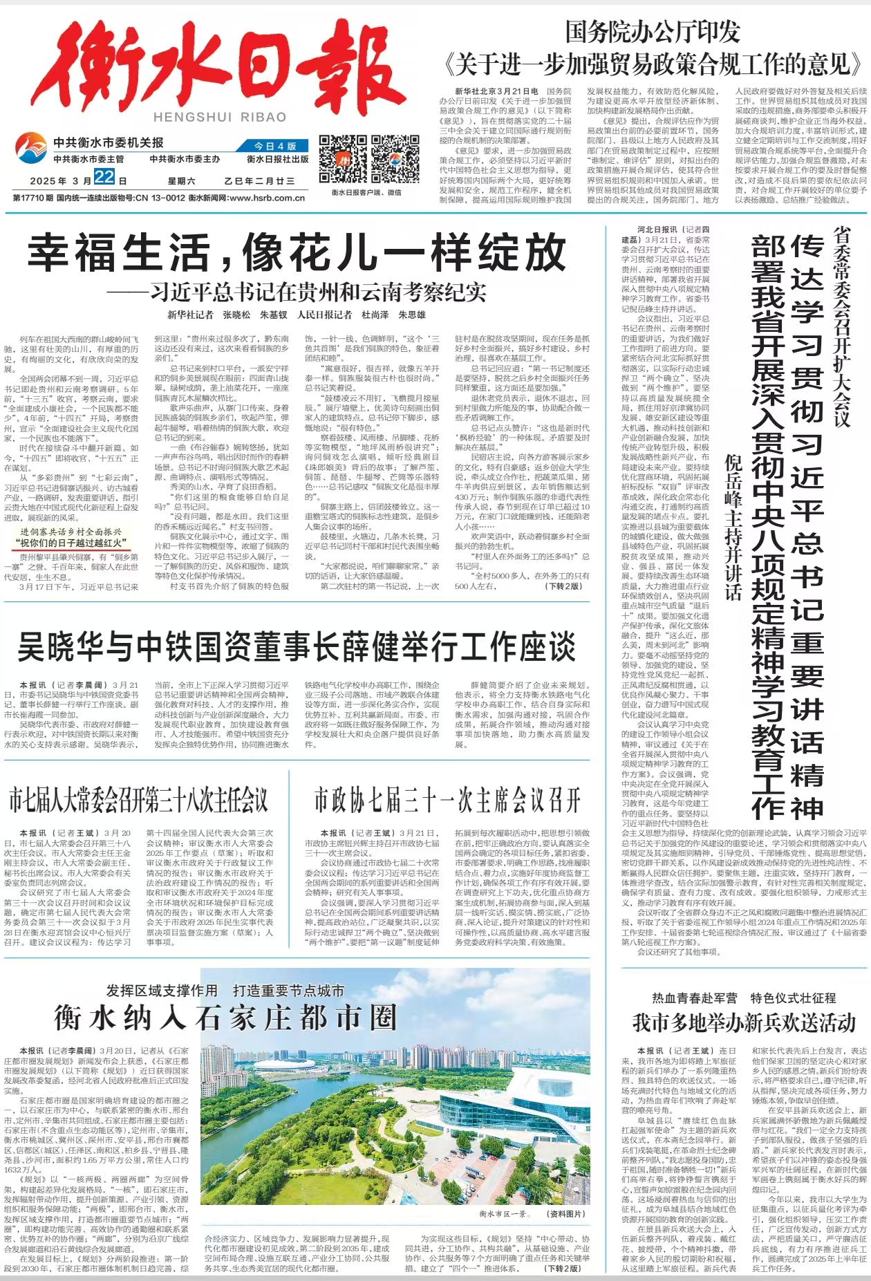3月22日,《衡水日报》头版发布重磅消息:《石家庄都市圈发展规划》近日获得国家发展改革委复函,经河北省人民政府批准后正式印发实施,衡水纳入石家庄都市圈。“差异化发展”“生态秀美宜居”……我的笔尖在这些陌生又熟悉的词汇下划出波浪线。