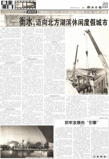 全市城镇面貌“三年大变样”的春风里,我的采访本画满了城市生长的轨迹:2010年10月1日,位于市中心的人民公园经过改造提升后向市民重新开放,改造后的公园呈现“一轴、两带、五区”布局,新增水面16697平方米,新增绿化面积26902平方米;人民路作为贯通市区东西的主干道,经过拓宽改造后,没有了过去频频堵车的困扰;主城区20个城中村完成拆迁,群众居住条件进一步改善……经过三年的努力奋斗,衡水的城镇化率由2007年的35%提高到去年(2009年)的40%,市区基础设施工程完成量和投资额相当于前10年的总和。