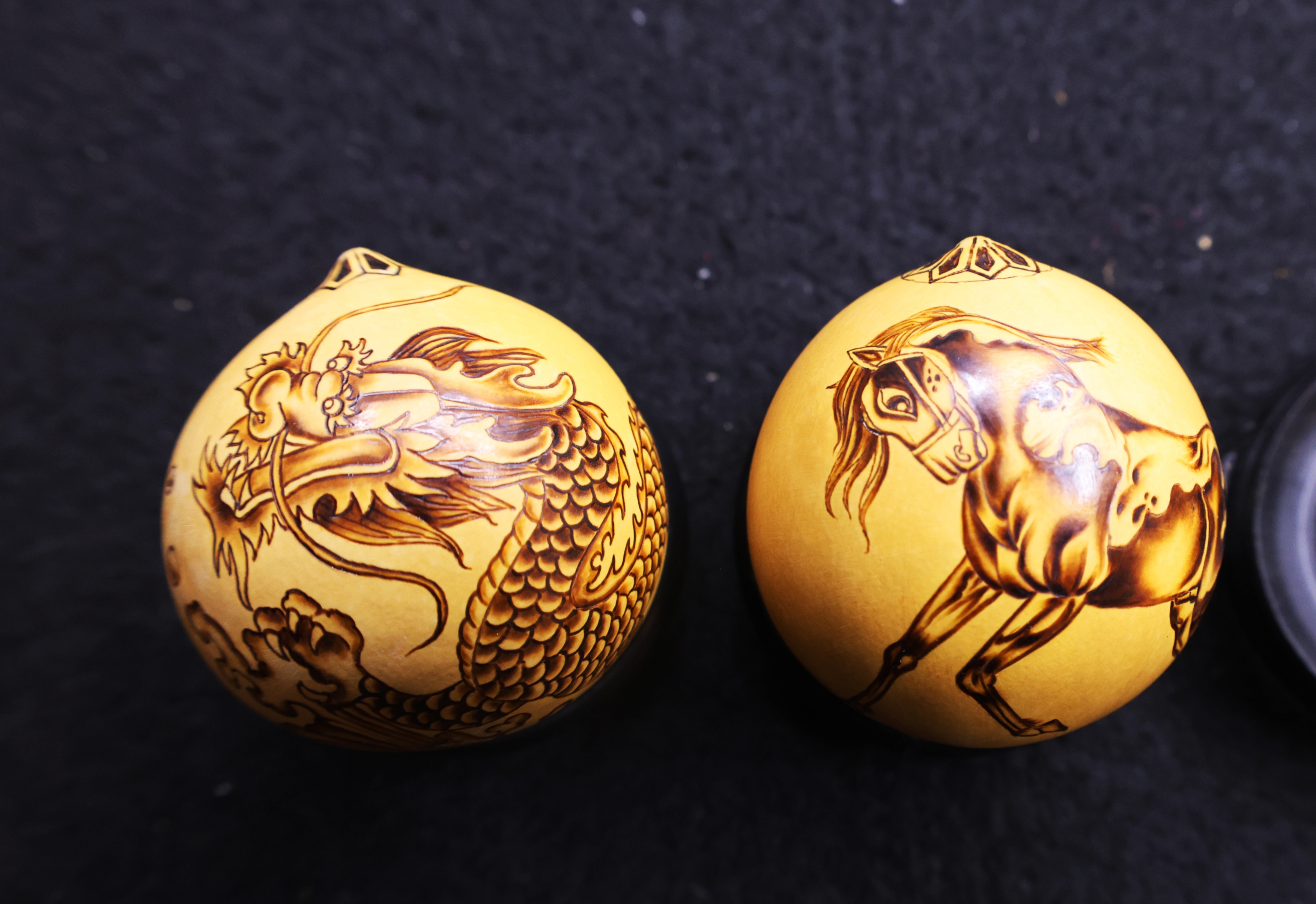 一次偶然的机会,何胜旺又接触到甘肃的“鸡蛋葫芦”。这种小巧玲珑的葫芦,让他看到了非遗与现代文创结合的可能。他将传统元素与现代审美相融合,创作出一系列便于携带的文创作品。生肖葫芦、吉祥图案葫芦……作品一经推出,便受到市场热捧。