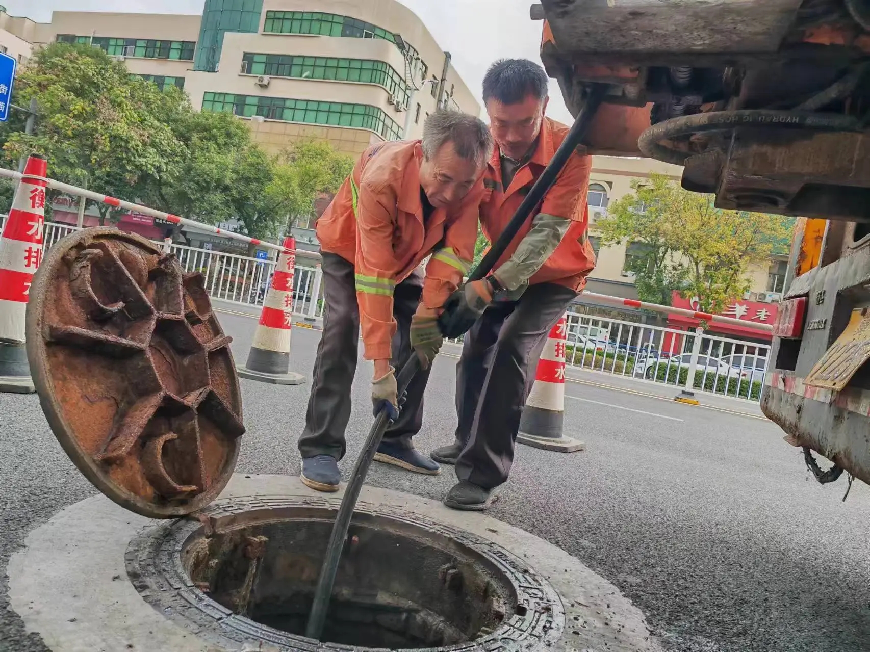 清淤工作中,工作人员采用“机械冲洗+人工清掏”协同的作业模式,出动150余人次、2辆专业清淤疏通车,清理城区主次干道13214米,清理检查井300余座,疏通易堵点10余处,更换修复雨污水井箅井盖10余处。为降低清淤作业对居民日常生活的影响,工作人员实行错峰施工,施工区域设置明显的警示标识,安排专人负责交通疏导,保障行人和车辆的安全通行。