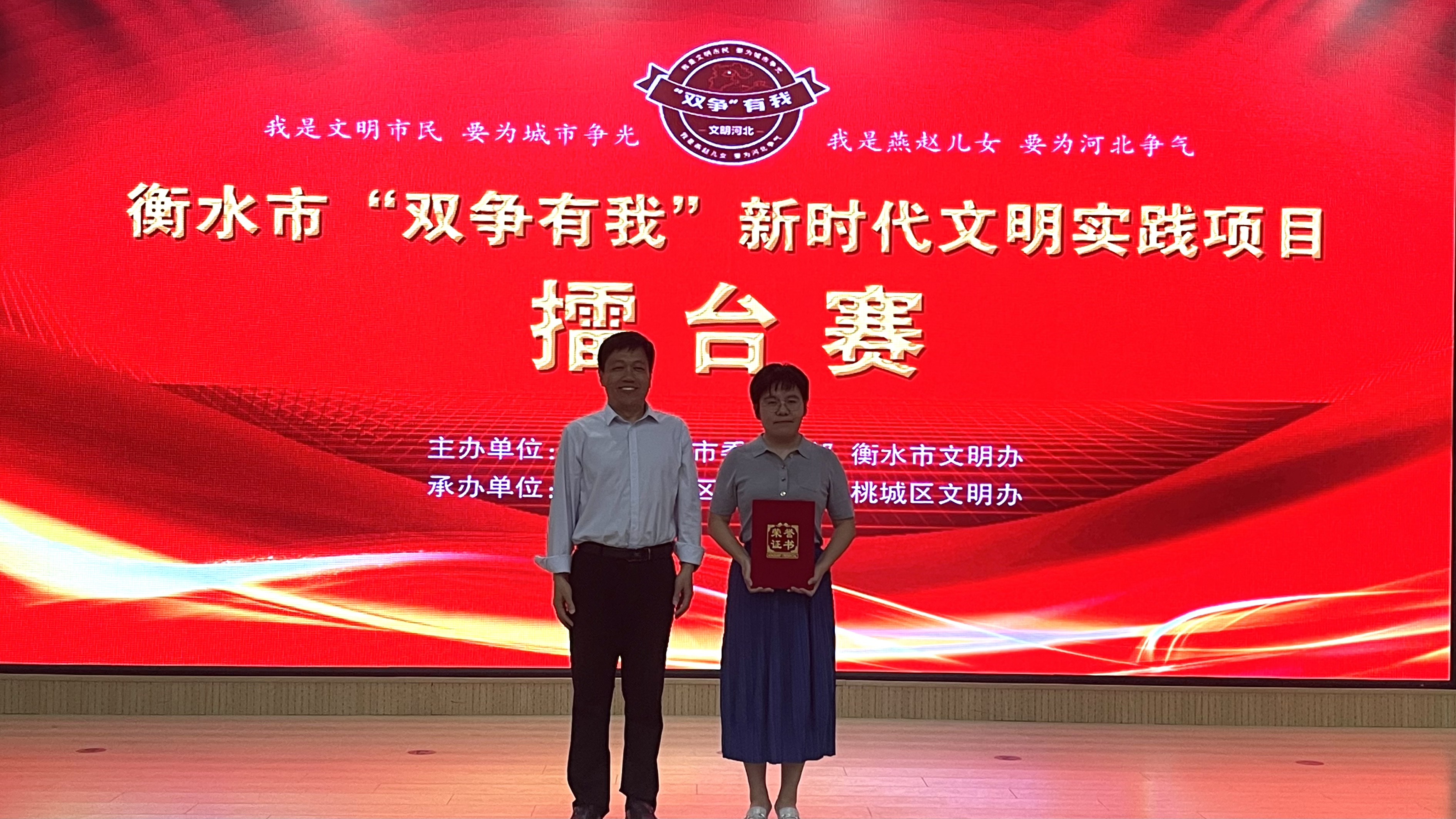 本报讯(记者杜俊颖)5月16日下午,由市委宣传部、市文明办主办的衡水市“双争有我”新时代文明实践项目擂台赛在桃城区新时代文明实践中心举行。全市各县市区推选出的11个文明实践项目同台竞技,尽展风采,在互学共鉴中推动我市新时代文明实践中心建设工作迈上新台阶。