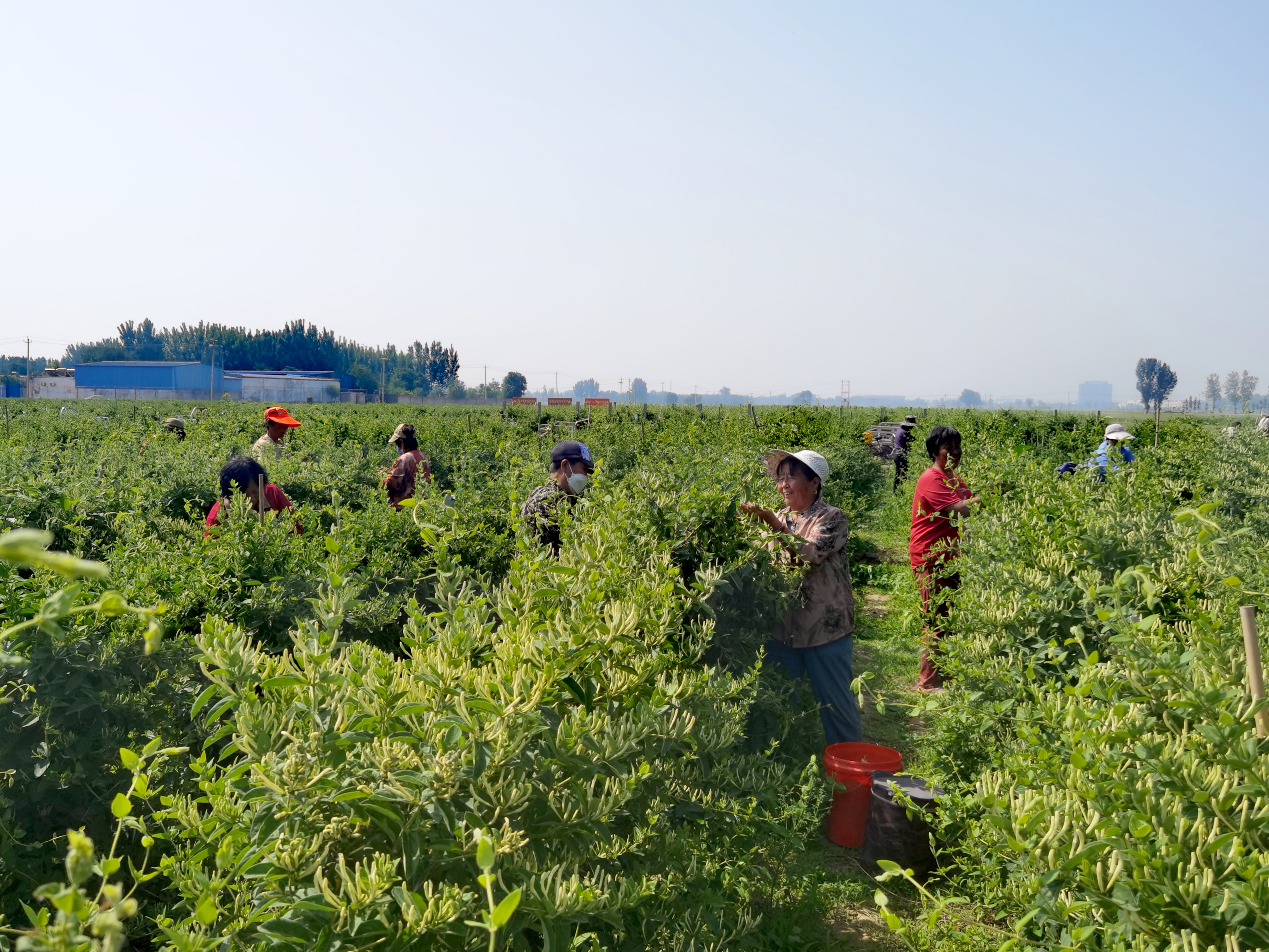 5月19日,走进深州市乔屯乡乔家寺村,连片的金银花田宛如绿色锦缎铺展在大地上,一簇簇黄白相间的金银花缀满枝头,村民们穿梭其间,指尖翻飞采摘花蕾,欢声笑语中洋溢着丰收的喜悦。