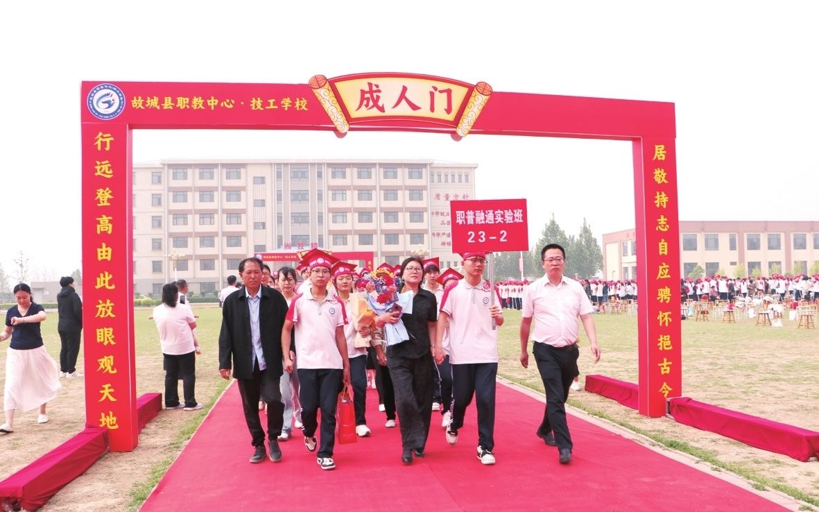 5月16日,故城县职教中心·技工学校举办以“十八而至 技能成才”为主题的2023级学生成人礼仪式。全校高二学生,在家长及老师的陪伴下,共同跨越了人生的重要里程碑。