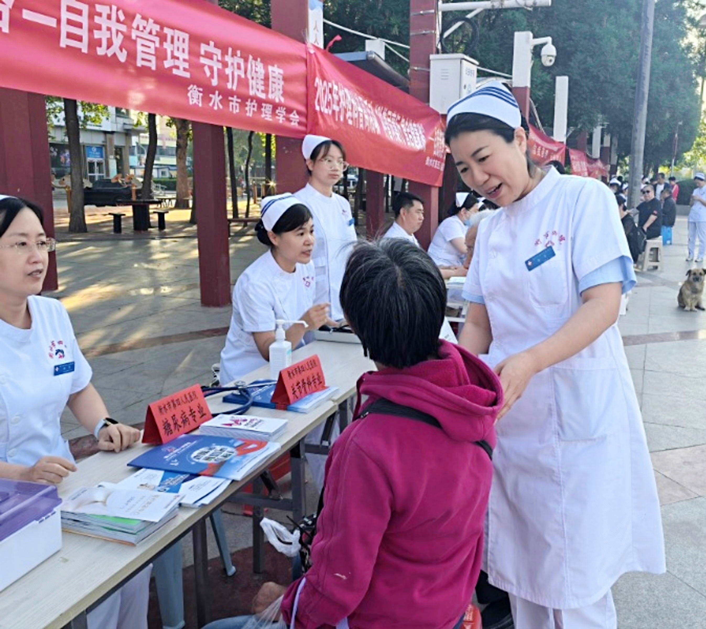 在活动现场,重点围绕急救科普、疾病预防、慢病管理、康复指导、中医养生、心理健康、睡眠管理等领域,医护工作者以知识赋能健康,用科学守护生命,更好助力全民健康素养。衡水市护理学会理事长李彬,副理事长梁平,常务理事林灵芝、康静、周金艳、吴丹、王静、高艳、纪彦华等,也积极参与进来,为群众进行精彩科普讲解,让现场氛围格外热烈。