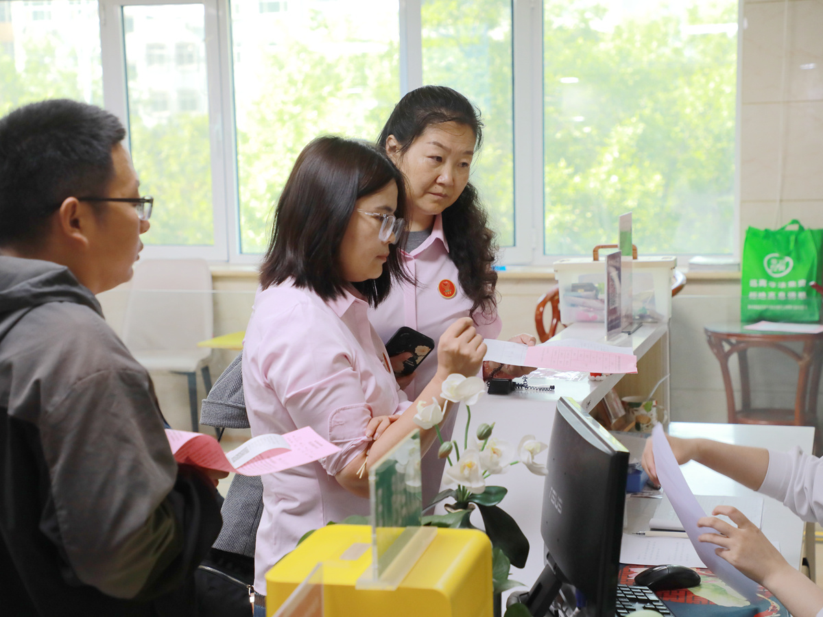 “爱心爸妈”在核实检查项目。刘一鸣 摄