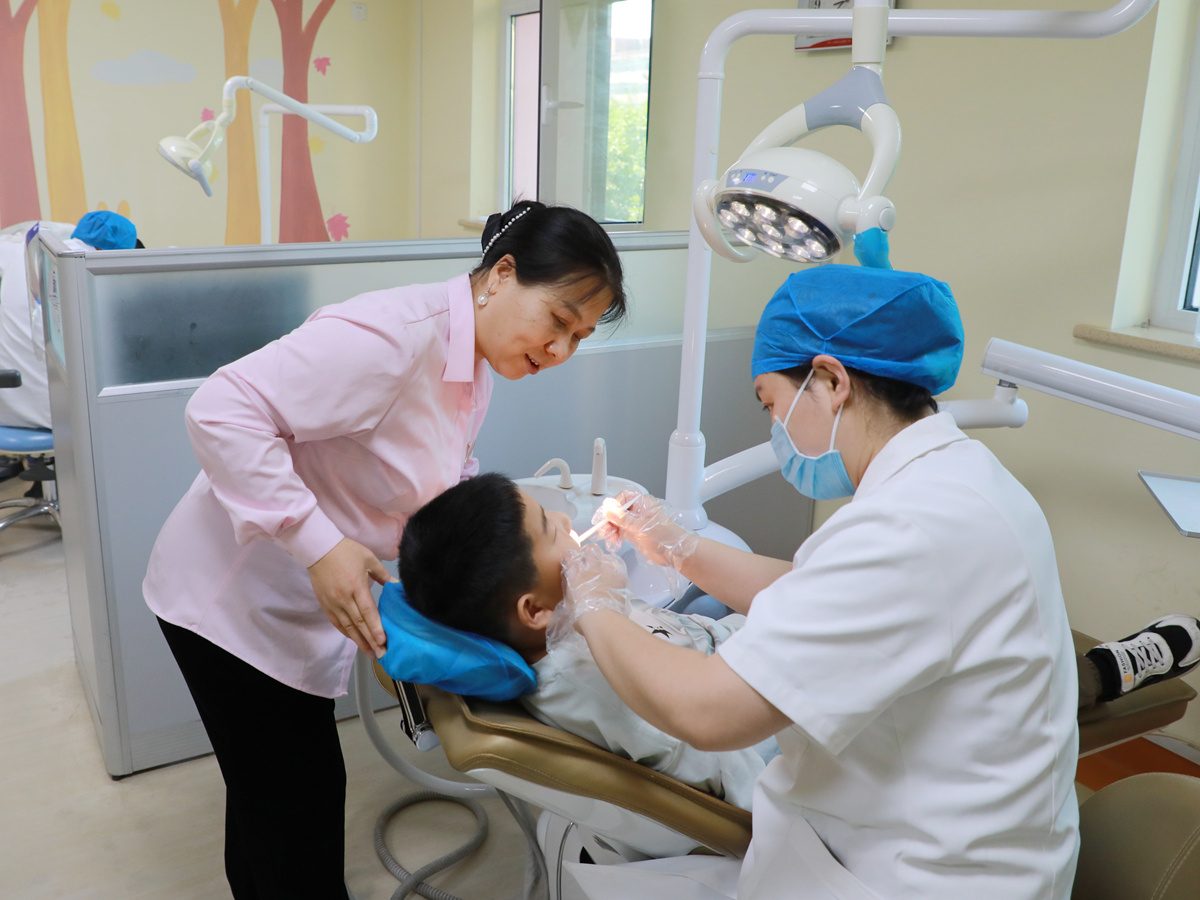 “爱心妈妈”带着孩子体检。刘一鸣 摄