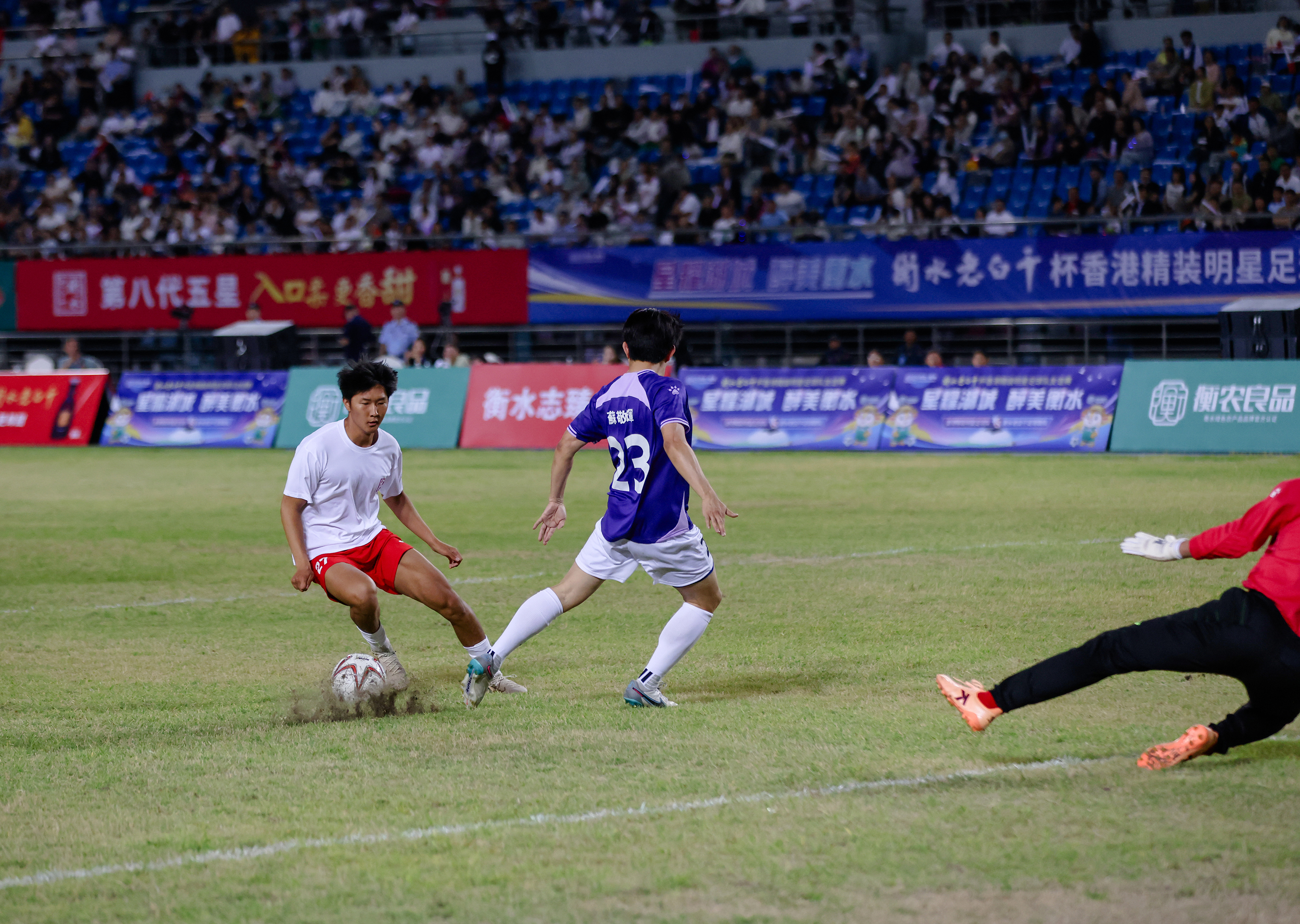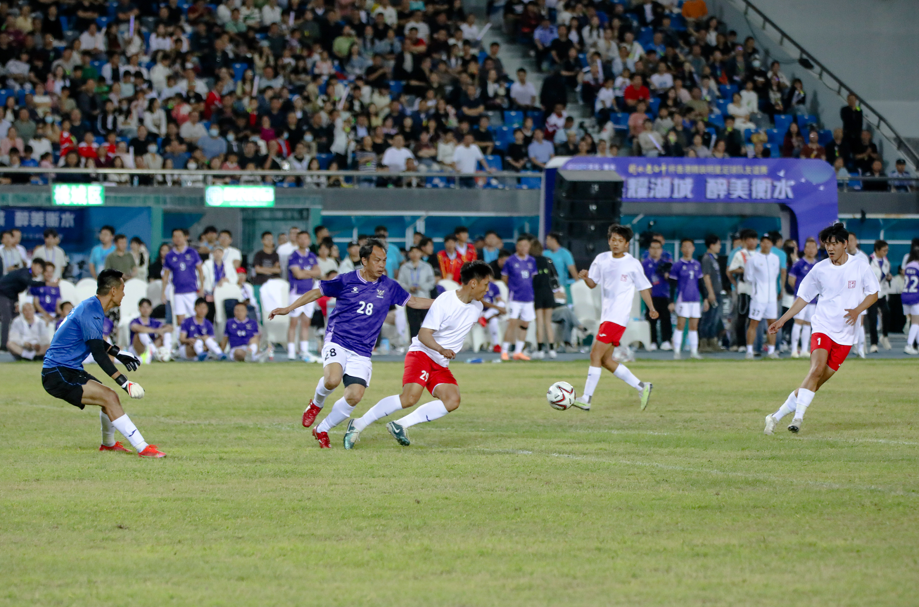 5 月 24 日,“星耀湖城 醉美衡水” 香港精装明星足球队友谊赛在衡水市奥体中心盛大举行,上万名热情观众齐聚一堂,共同见证这场足球盛宴。由陈百祥、王晶率领的香港精装明星足球队,与衡水老白干足球联队展开了一场精彩纷呈的对决。
