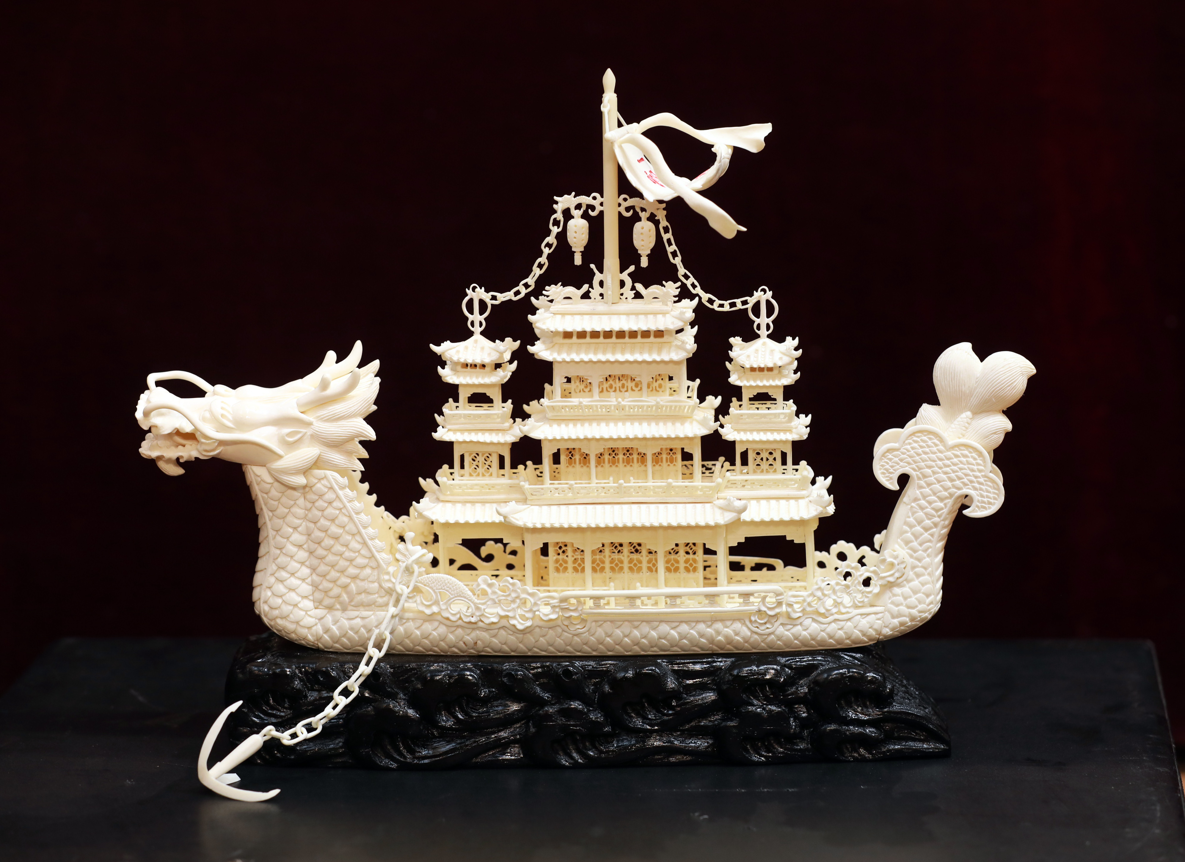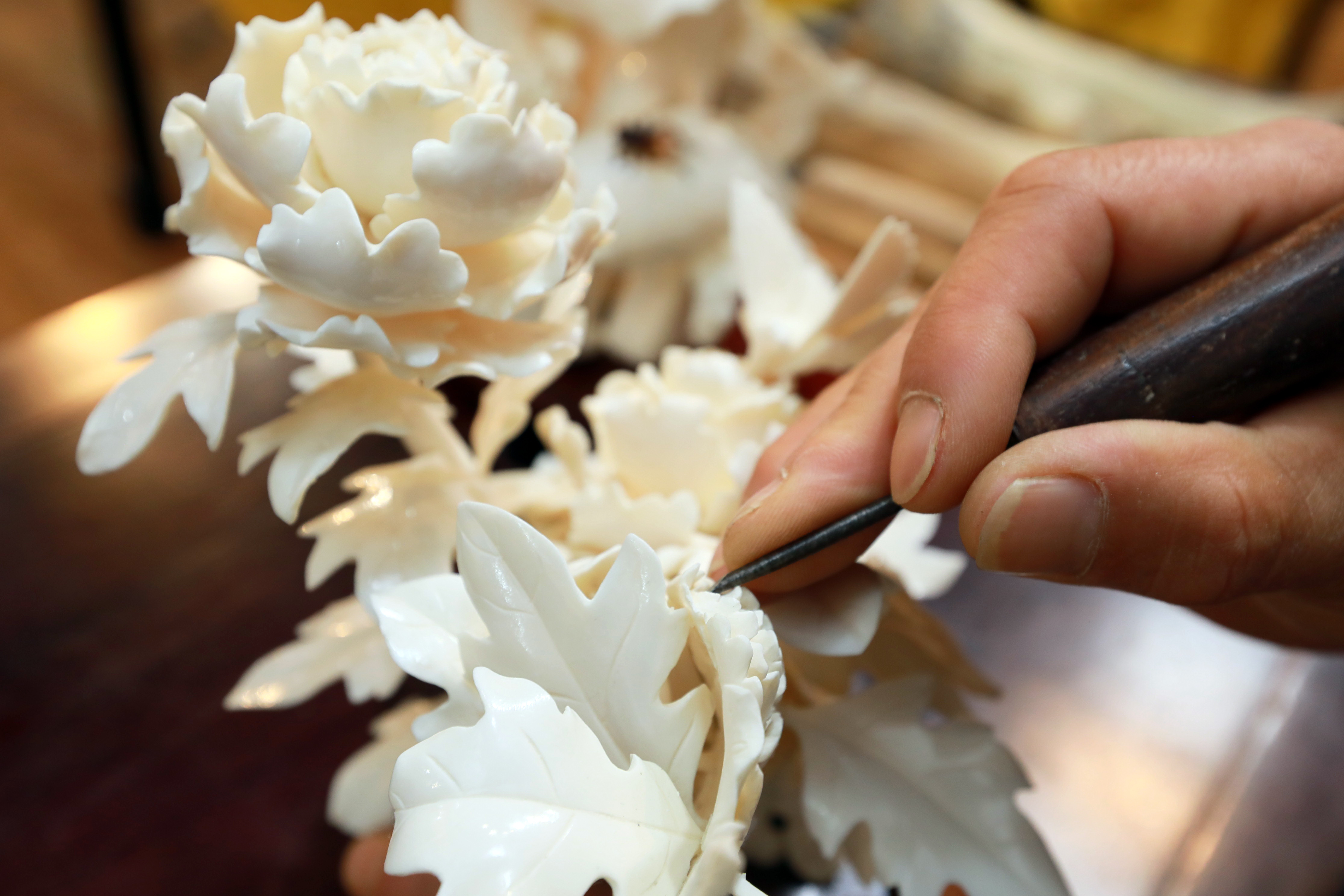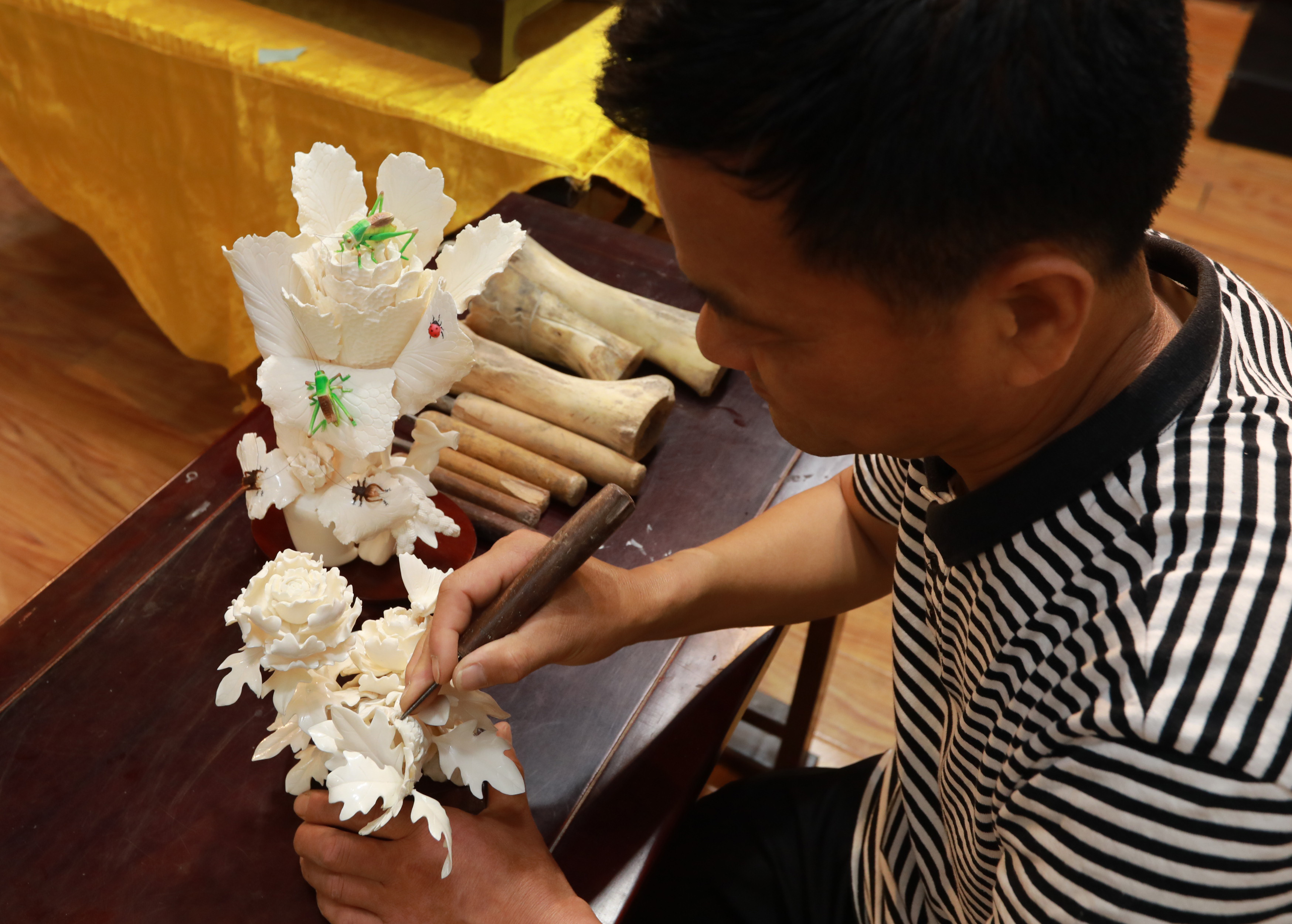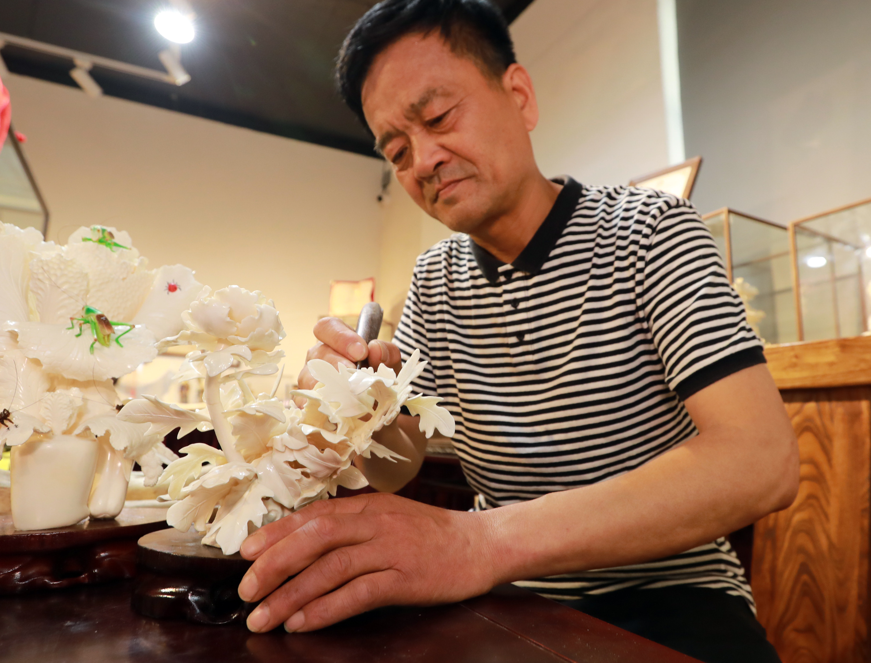 饶阳骨雕的制作,是一场对耐心与技艺的极致考验。每一件作品都需历经脱脂、解料、凿、铲、打磨、雕刻、漂白、上色、组装等十余道繁杂工序。张敬全如今创作的骨雕作品涉及人物、动物、楼阁、花卉等六大类100多种,销往全国各地,并出口加拿大、日本等国家和地区。2019 年,饶阳骨雕制作技艺成功入选河北省级非物质文化遗产名录,这门古老技艺在传承人的坚守下,绽放出耀眼的时代光彩。