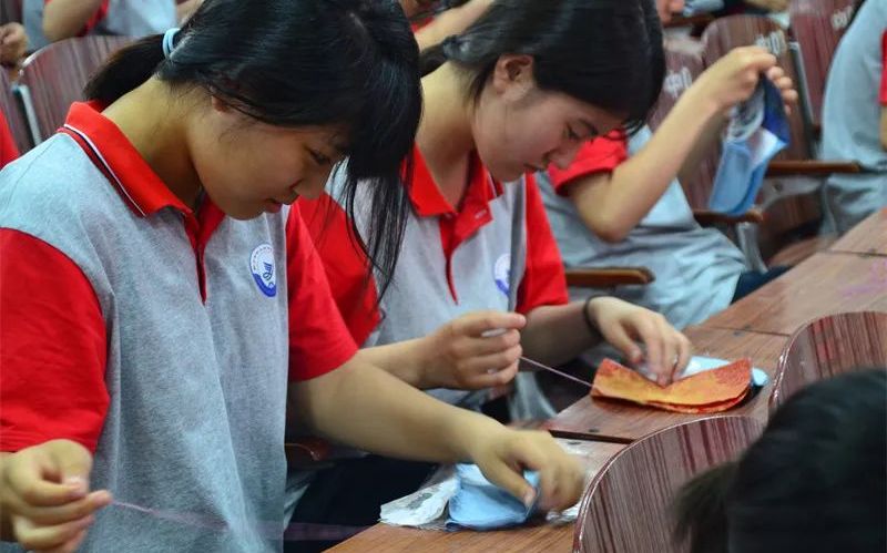除了包粽子,缝制香囊也是此次活动的一大亮点。学生们手持彩绸布袋,在老师的指导下,小心翼翼地将混合好的中药材装入囊中。随着针线的穿梭,一只只绣着吉祥纹样、散发着淡淡药香的香囊便在指尖诞生。这些香囊不仅寄托了大家对健康和幸福的祈愿,更展现了学生们精湛的手工技艺。
