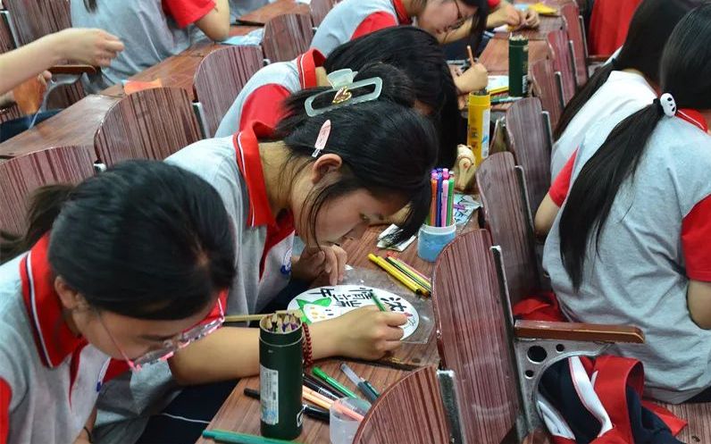 此外,绘团扇环节也颇受学生们的喜爱。他们以端午元素为灵感,在素面团扇上绘制龙舟竞渡、青山绿水、诗词书法等图案。一把把团扇既是传统文化的载体,也成为展现中职生艺术创意的舞台。这些精美的团扇不仅丰富了校园文化生活,更让学生们深刻感受到了传统文化的独特魅力。