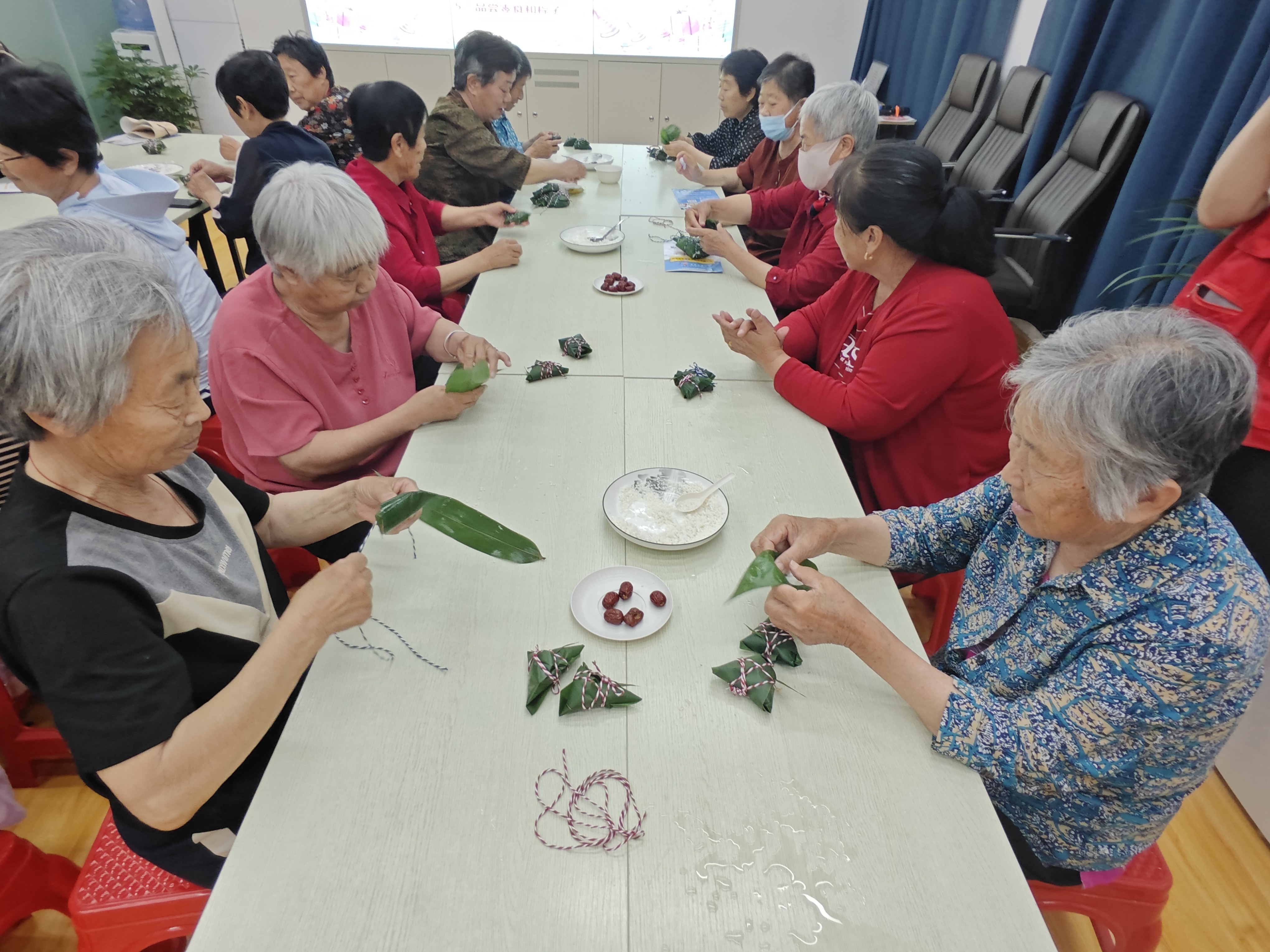活动伊始,社区工作者热情洋溢地介绍了六一国际儿童节和端午节的来历与习俗,现场互动环节中,居民们踊跃分享往年过节的趣事,活动室里充满欢声笑语。随后,特色体验环节正式开始。首先是制作艾草花束,老人们在社区工作者的指导下,将散发着清香的艾草整理、捆扎,再用精美的包装纸细心装饰。老人们一边制作,一边互相交流技巧,不一会儿,一束束饱含驱蚊祈福寓意的艾草花束便制作完成。紧接着包粽子环节正式登场,社区工作者耐心讲解包粽子的步骤和技巧,大家纷纷动手尝试,捋粽叶、填糯米、放红枣、裹叶子、扎绳子,不一会儿,形态各异的粽子便摆满了桌面,空气中弥漫着浓浓的粽香。