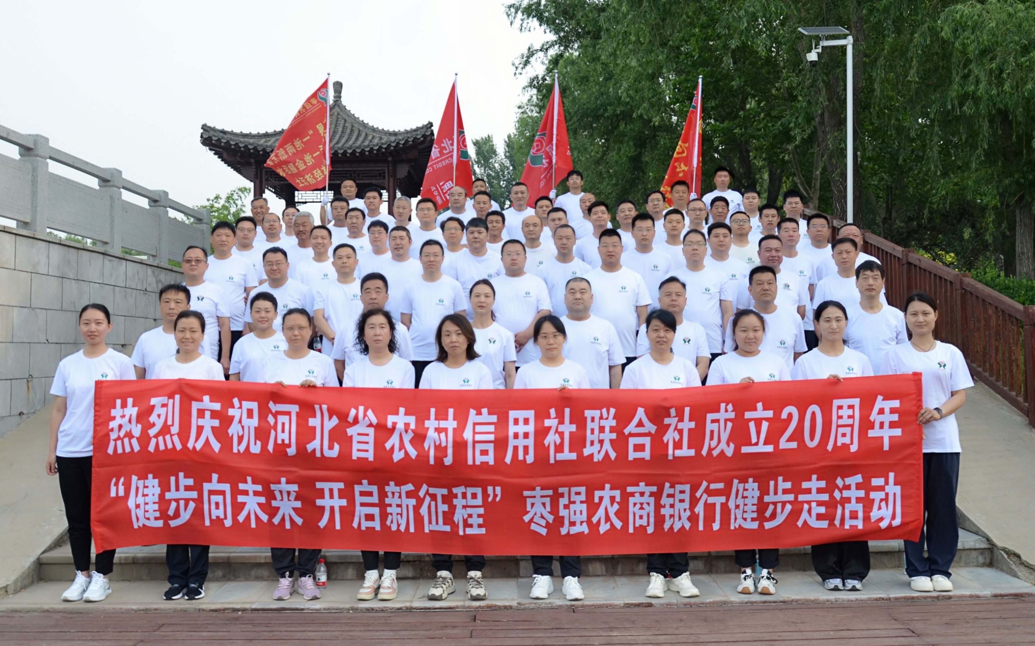 为庆祝省联社成立20周年,深入贯彻落实“健康中国2030”战略部署,积极营造健康向上的企业文化氛围,5月30日,枣强农商银行组织干部职工100余人开展“健步向未来 开启新征程”健步走活动。本次活动从总行出发,沿着人民东街、和平南路、新华西街到移民文化园,全程约5.2公里。