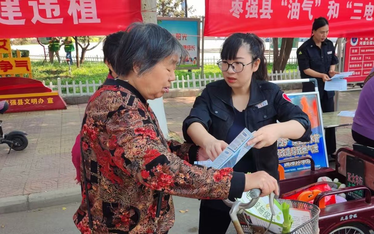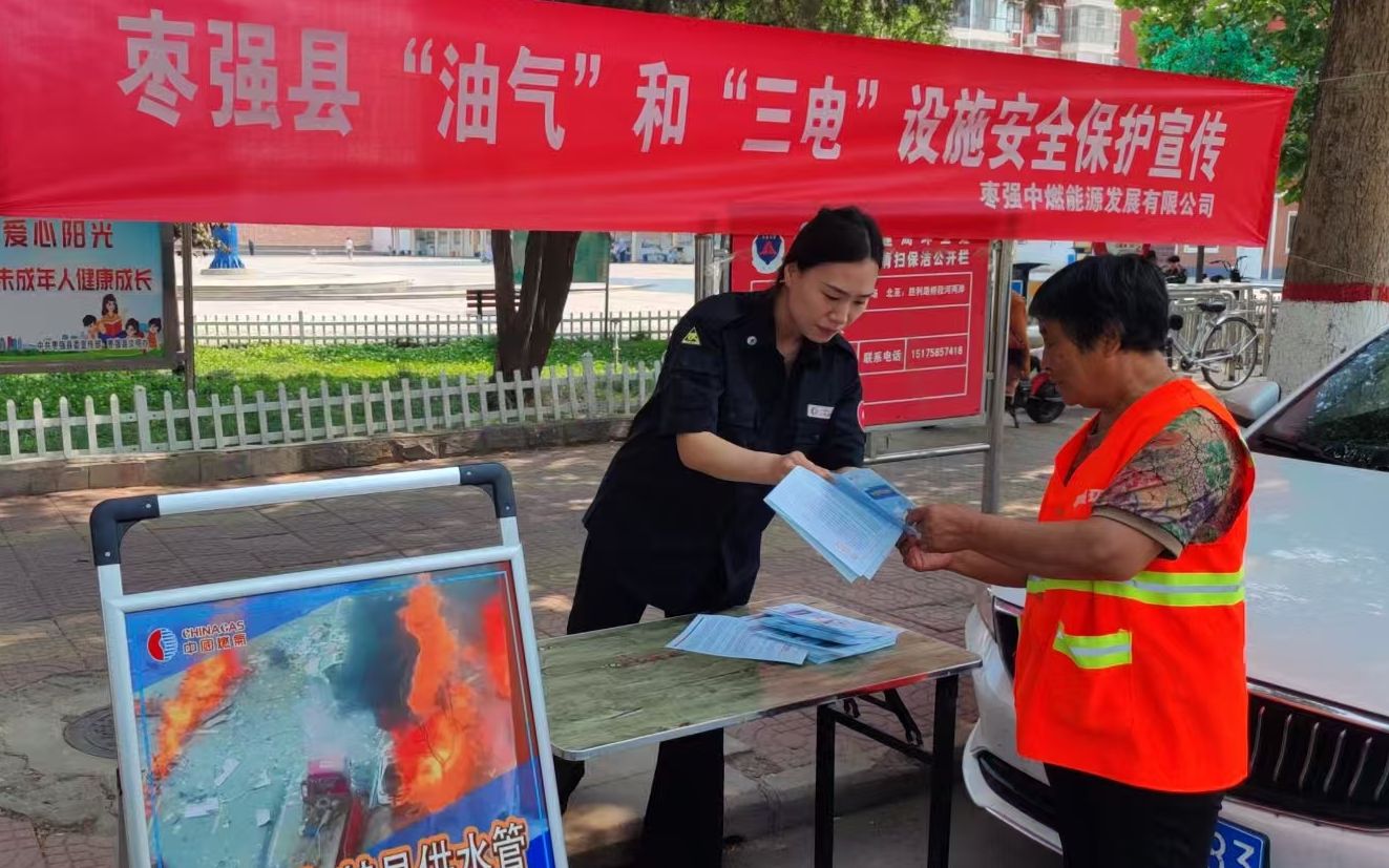 为进一步提高公众对燃气管道设施保护的认识,增强安全意识,近日,枣强中燃能源发展有限公司(以下简称枣强中燃)安全监察部、生产运营部、客户服务部联合组织,结合油气和三电设施安全保护工作,开展了一场内容丰富、形式多样的燃气管道设施保护宣传活动。