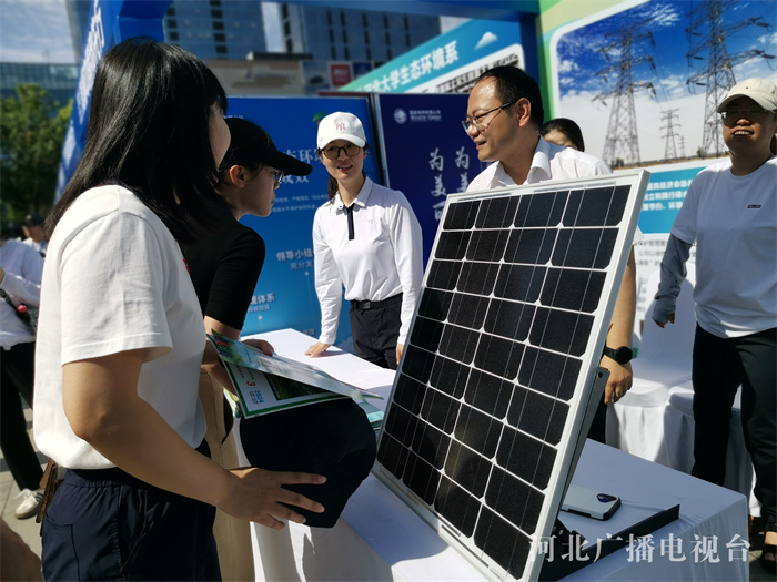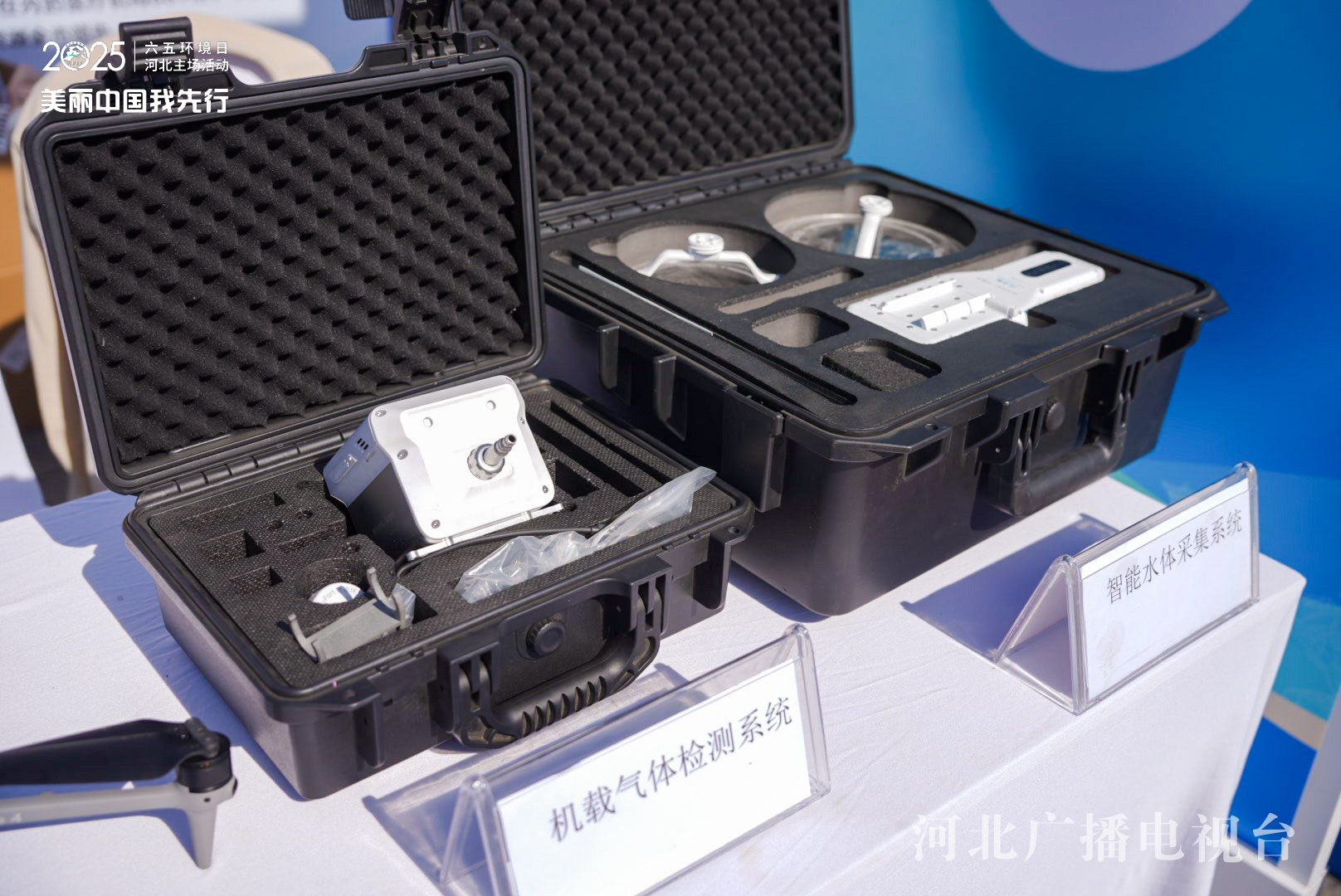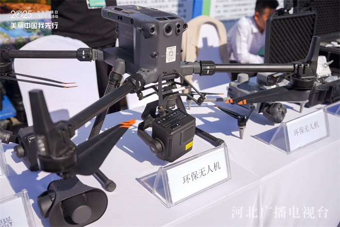 在活动现场的生态展览区,环保无人机、污染物降解装置、光伏发电、白洋淀水生植物样本等实物展示着河北生态领域的科研创新、校园与企业的环保实践。