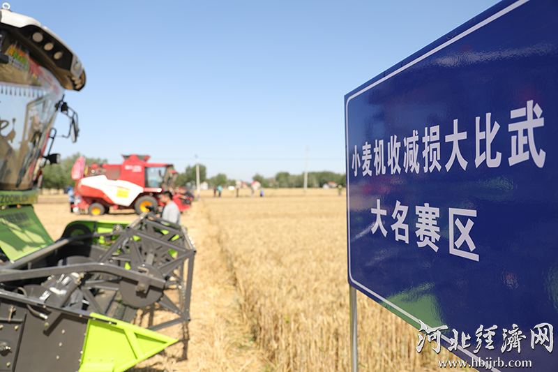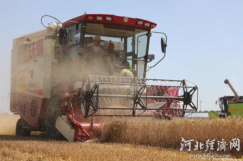 活动现场,农机手驾驶收割机收割小麦。河北经济日报记者 李佳琦 摄
