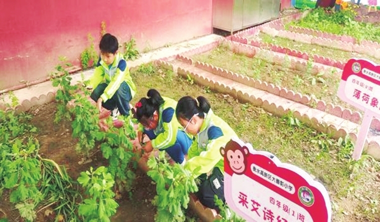 在前进小学的“科技农场”,通过编程控制模拟人类摇头动作的机械装置,正配合相关器材,温和驱赶农场中的飞禽,保护农作物免受侵害。