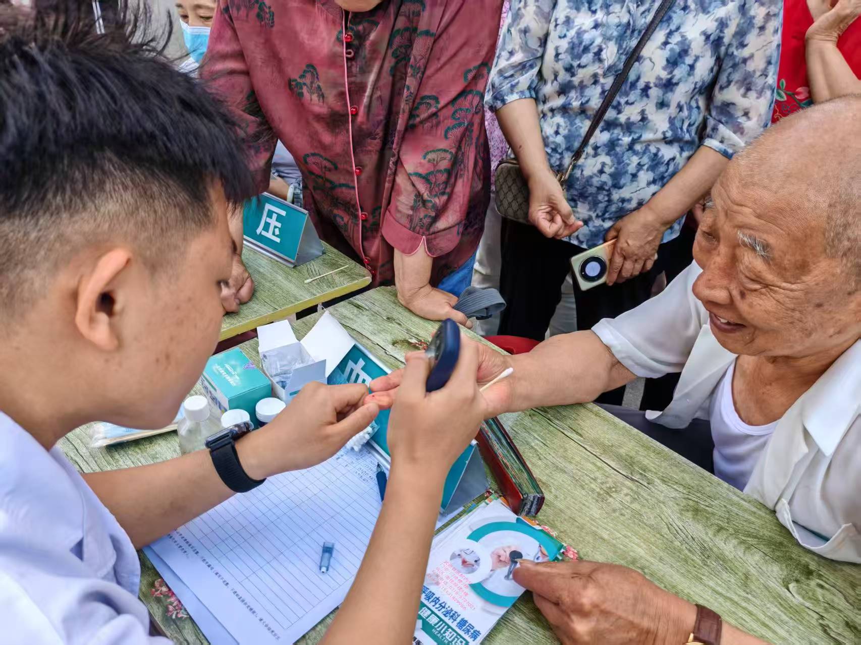 检查中,医护人员针对老年人常见的高血压、糖尿病等开展专项筛查,并对体检中发现的潜在健康风险,当场给出用药调整建议和饮食指导。“老哥,咸菜虽香,但咱得少吃,吃多了血压容易高。”“炖肉时撇去浮油,血脂才能稳住。”……与此同时,低龄老人志愿者们则化身“健康宣传员”,操着亲切的方言,用通俗易懂的语言向高龄老人普及健康饮食知识。