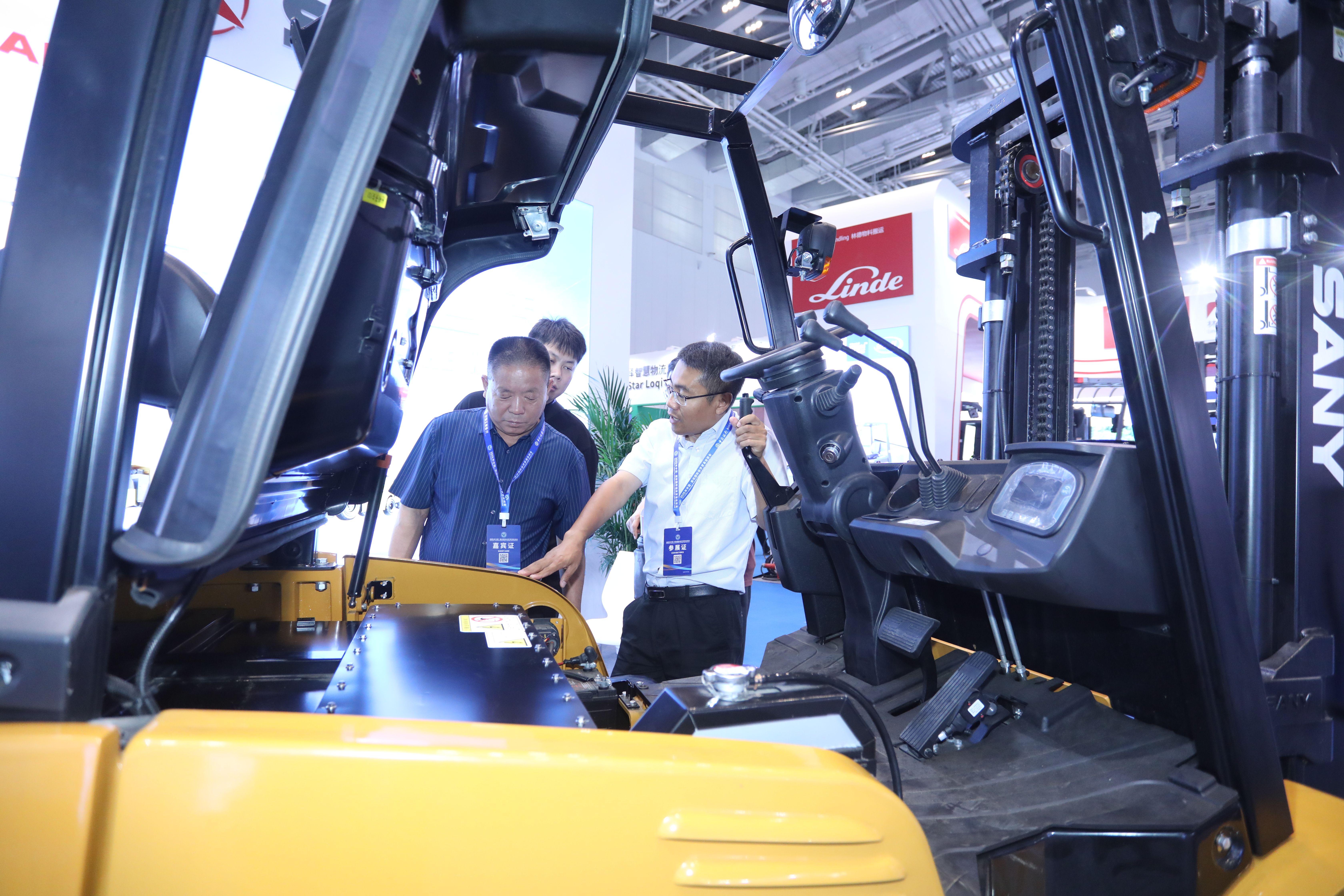 6月15日,工作人员在廊坊临空国际会展中心智慧物流技术与装备展区调试攀爬拣选式AGV自动导引运输车。河北日报记者 赵永辉摄