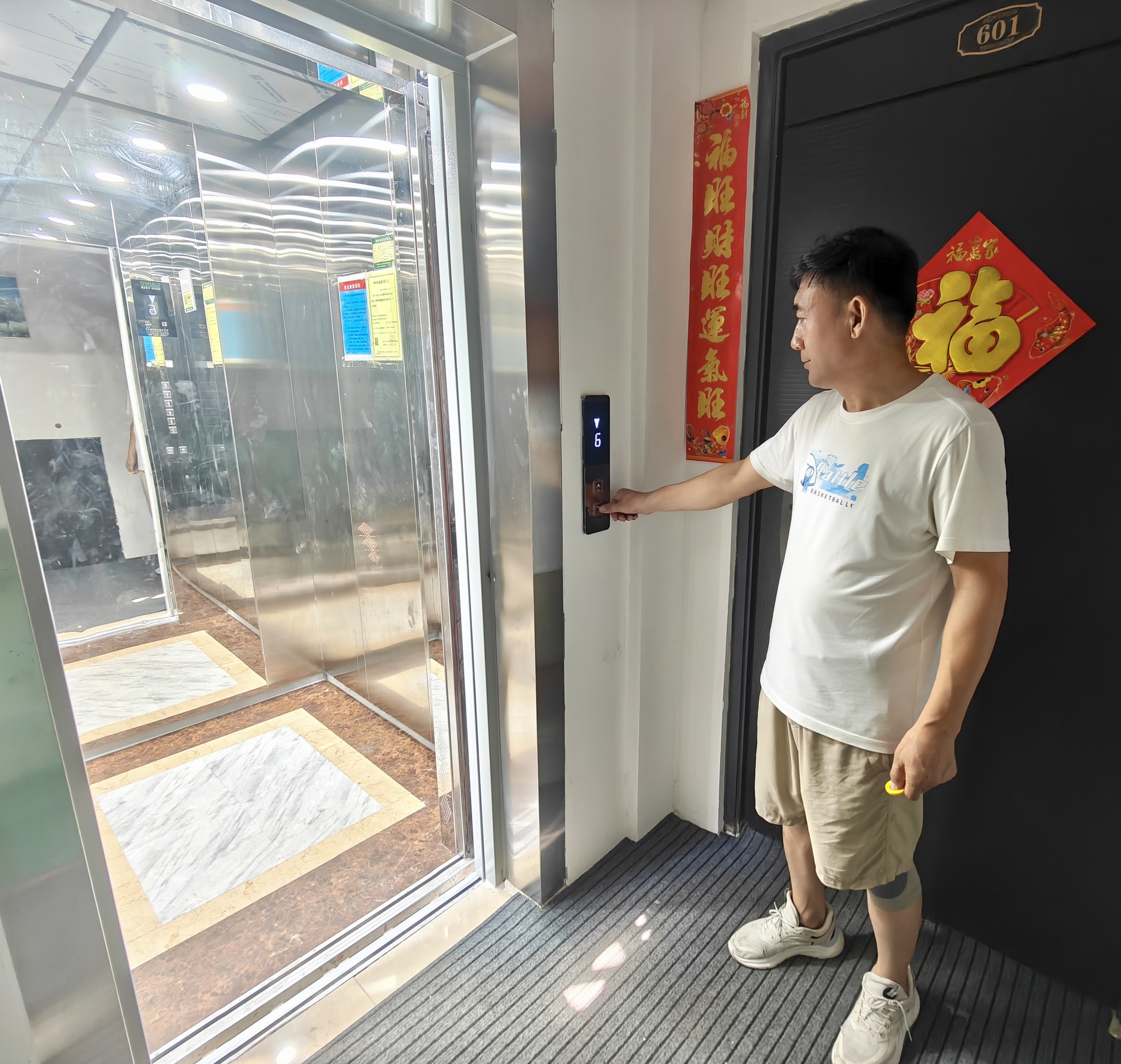 富亿坊小区3号楼作为小高层,1至2层为底商,3至7层住户长期受“爬楼难”困扰。“以前母亲想来小住,爬几层楼就气喘吁吁,住不了两天就急着回家。”刘书林回忆,“垂直交通”的阻隔让团聚成了难题。如今,随着电梯投入使用,住在这里的“悬空老人”终于告别“望楼兴叹”的日子。