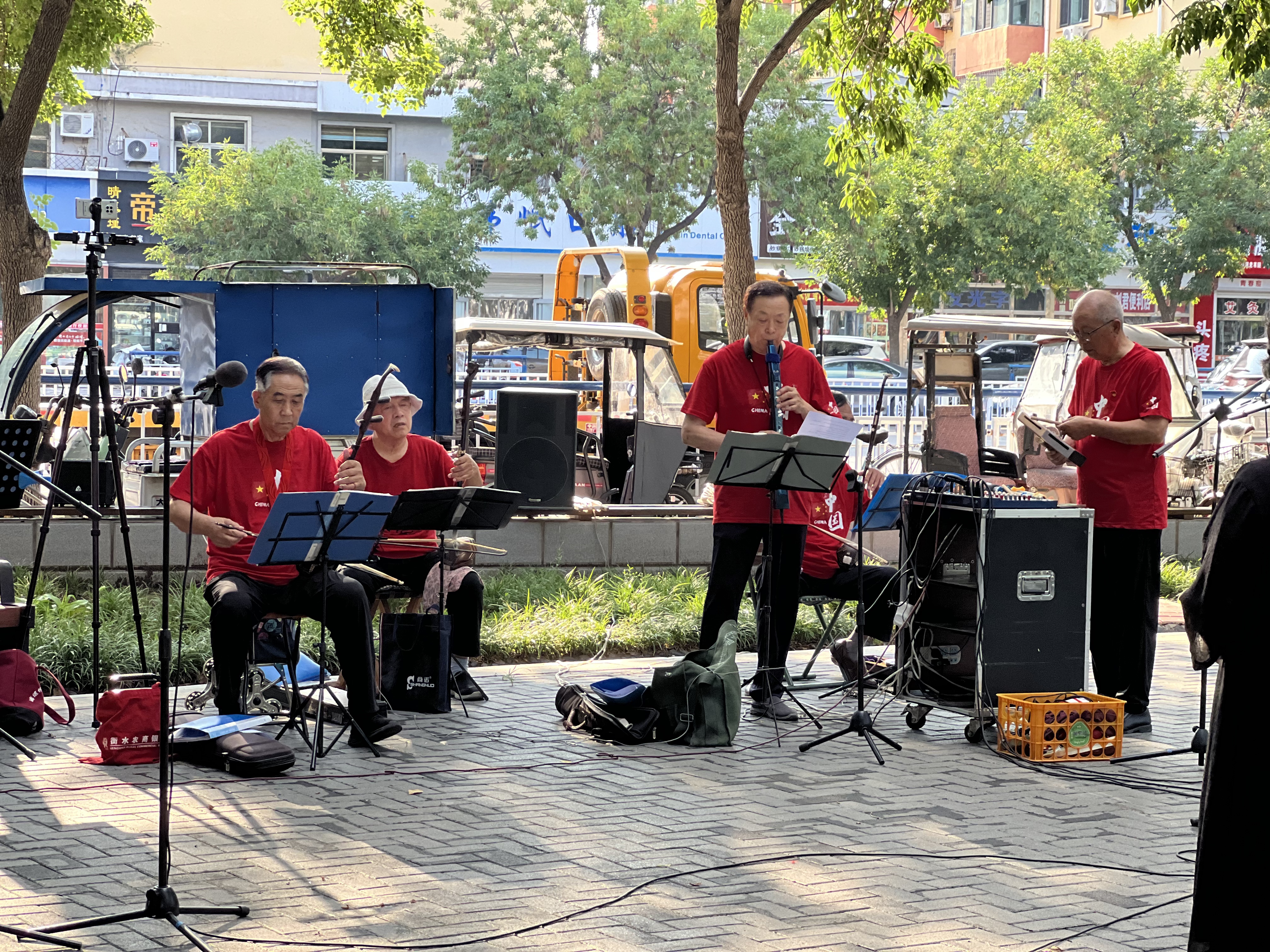 演出在歌曲《没有共产党就没有新中国》的大合唱中正式拉开帷幕,团员们精神饱满,歌声嘹亮,唱出了对党的深情热爱和对祖国的美好祝福,瞬间点燃了现场的气氛。萨克斯四连奏《送别》《我的祖国》《英雄赞歌》《毛主席的话儿记心上》、诗朗诵《我们心中的歌》、男声独唱《在那桃花盛开的地方》、京剧《枪林弹雨军民隔不断》、歌伴舞《颂歌献给亲爱的党》、女声独唱《希望在田野上》等15个形式多样的节目轮番上演,现场旋律悠扬,歌声嘹亮。精彩的表演吸引了众多市民前来观看,为表演者们送上了阵阵掌声和欢呼声。